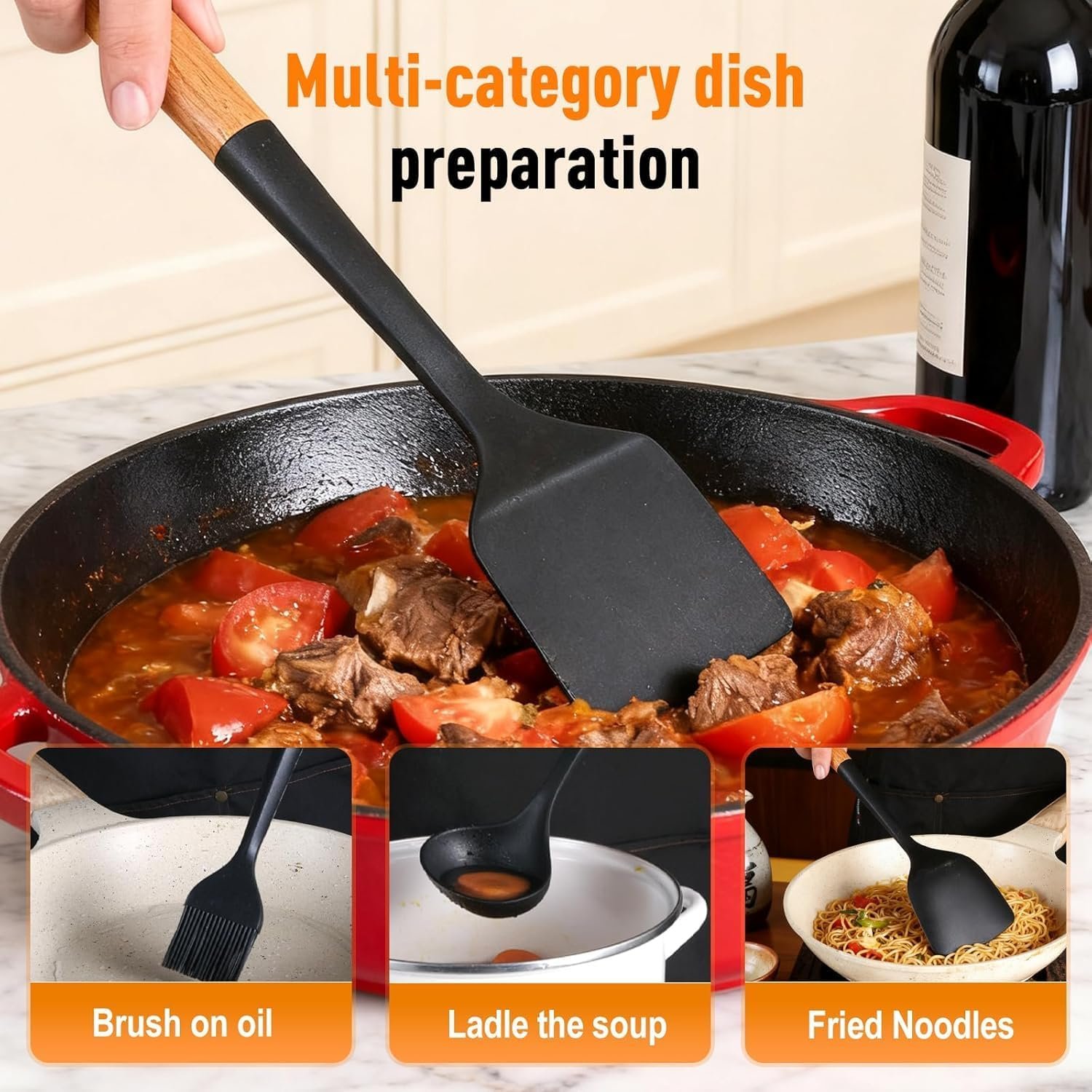 【High-Temperature Resistance】This multifunction spatula cooking spoon withstands high temperatures up to 446℉ (230℃), ensuring it meets all your cooking needs