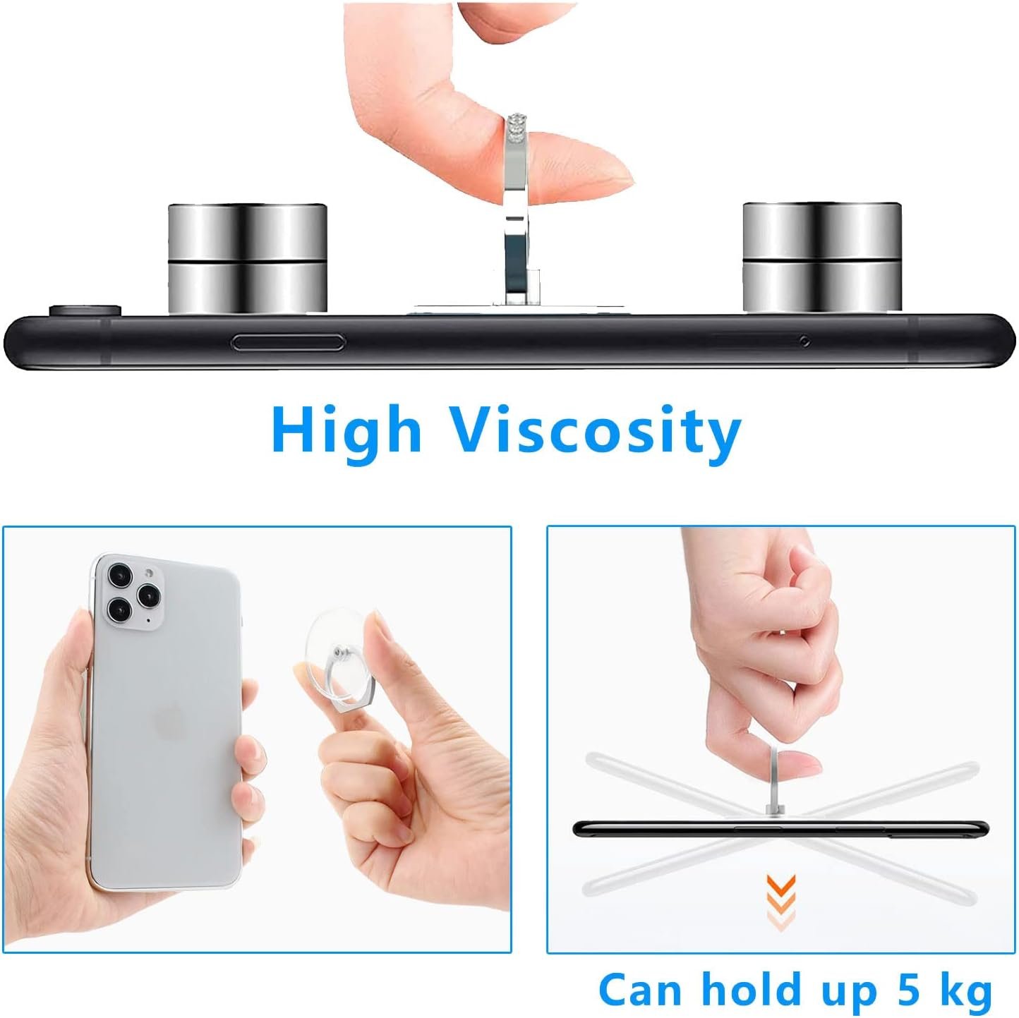 Strong adhesive makes the cellphone ring holder attach to your phone/case firmly, so that your device can stay in one position.