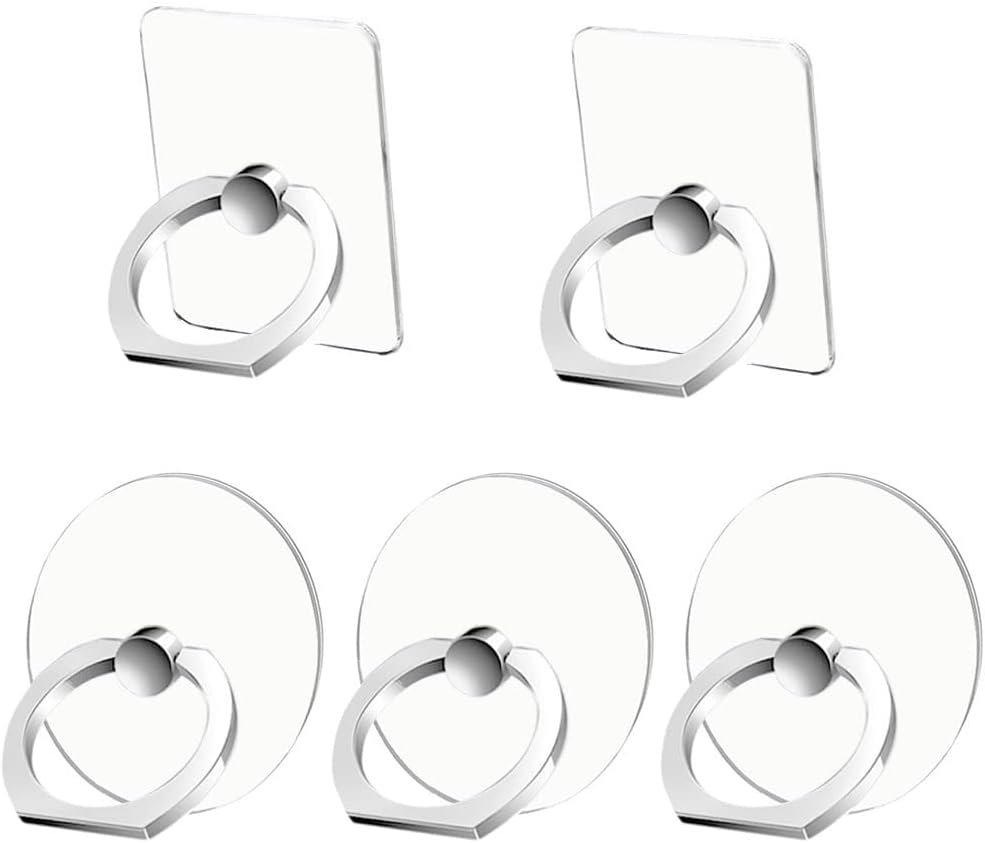 Cell Phone Ring Holder Stand 5 Pack Silver, Transparent Phone Ring Holder Finger Kickstand 360° Rotation, Clear Phone Ring Grip Compatible with Various Mobile Phones and Tablet