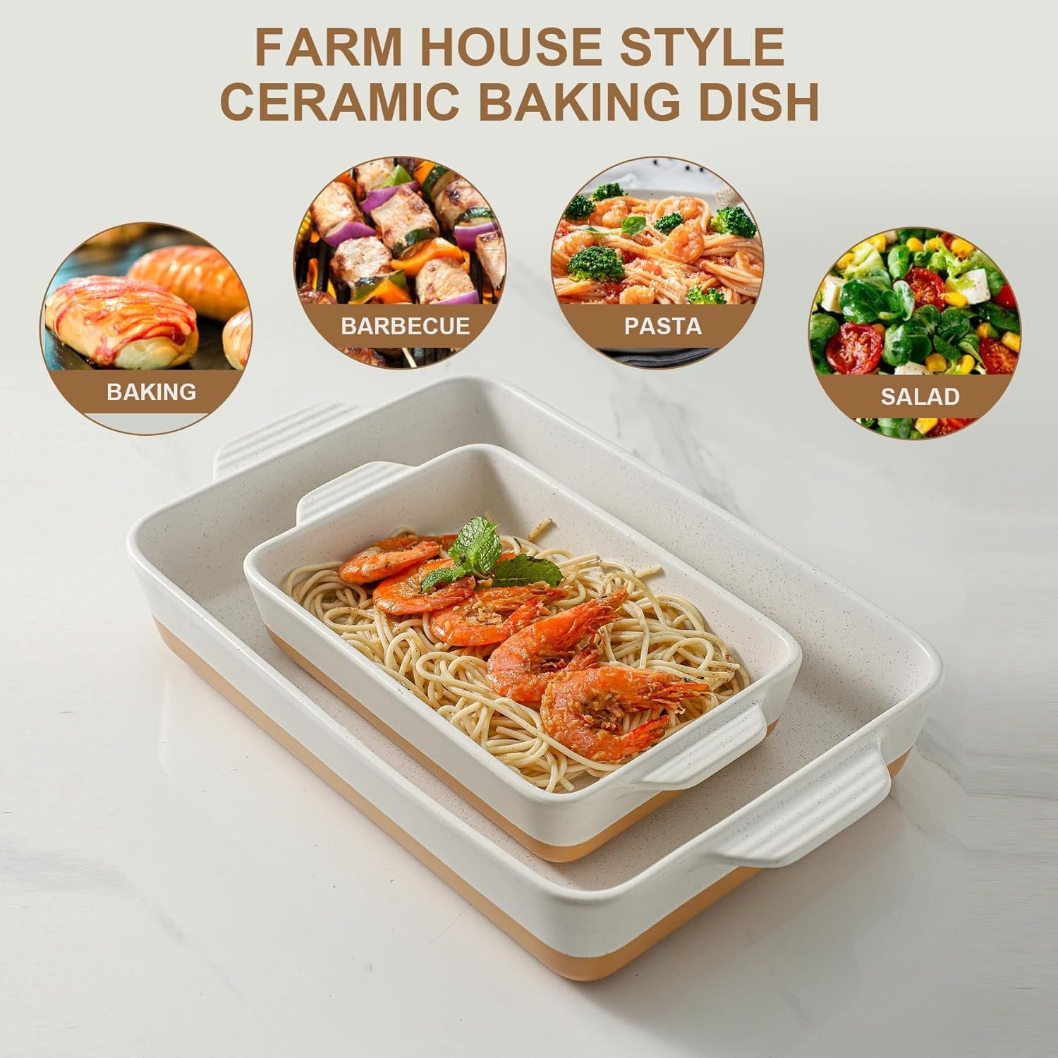Be the first to review “Ceramic Baking Casserole Dish with Handles, Large 9×13 inch Pan and Middle Baking Pan – Porcelain Serving Bakeware Set (Farmhouse White)”