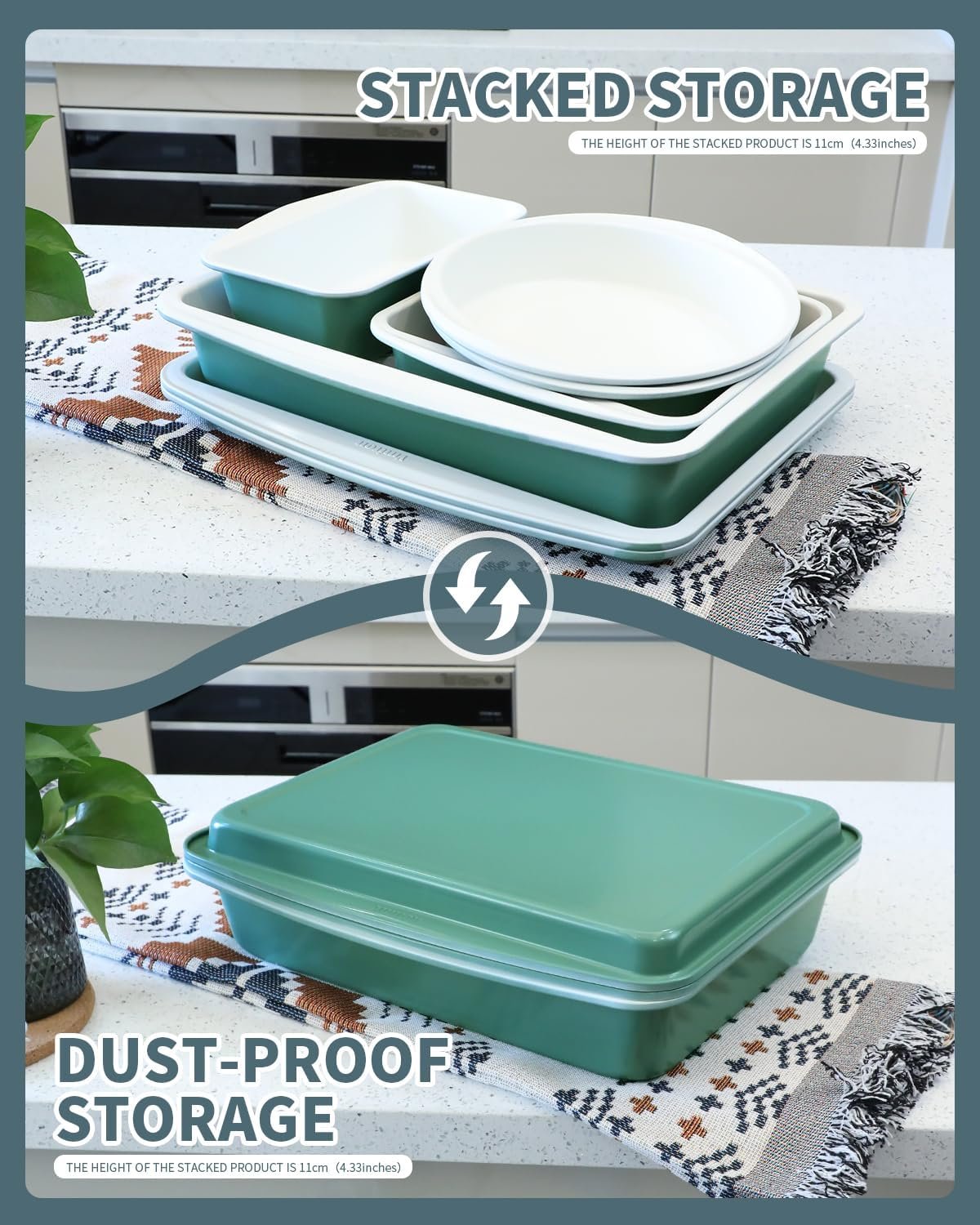 Ceramic Nonstick Baking Pans Set, Non Toxic 30 PCS Stackable Bakeware Sets, 550°F Oven Safe Baking Sheet & Pans, Warp-Free, Dishwasher Safe, PTFE/PFOA/PFOS-Free (Green)