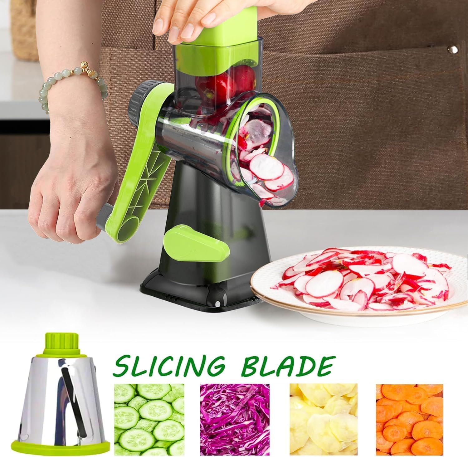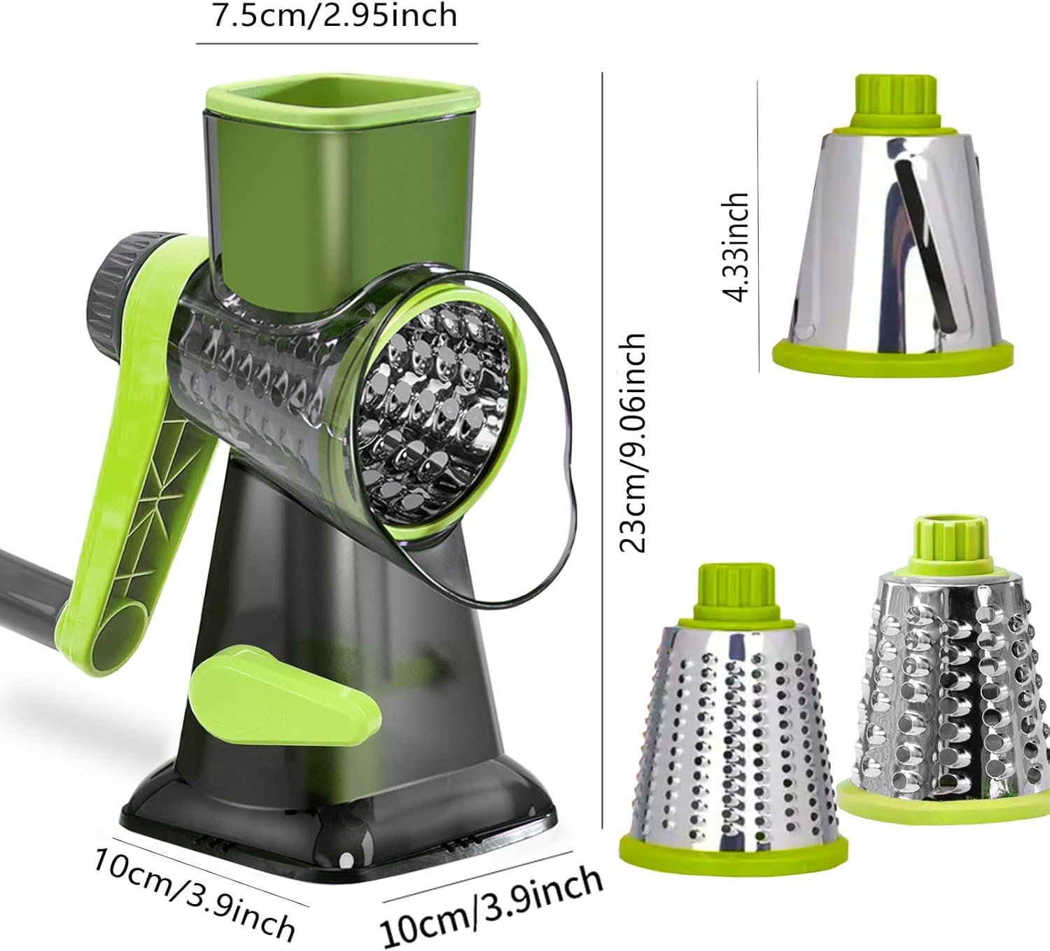 Cheese Grater Rotary Cheese Grater,Versatile Cheese Shredder,Blades for Shredding, Grating, Slicing,Cheese Shredder with Suction Base and Cleaning Brush Kitchen Gift (green)