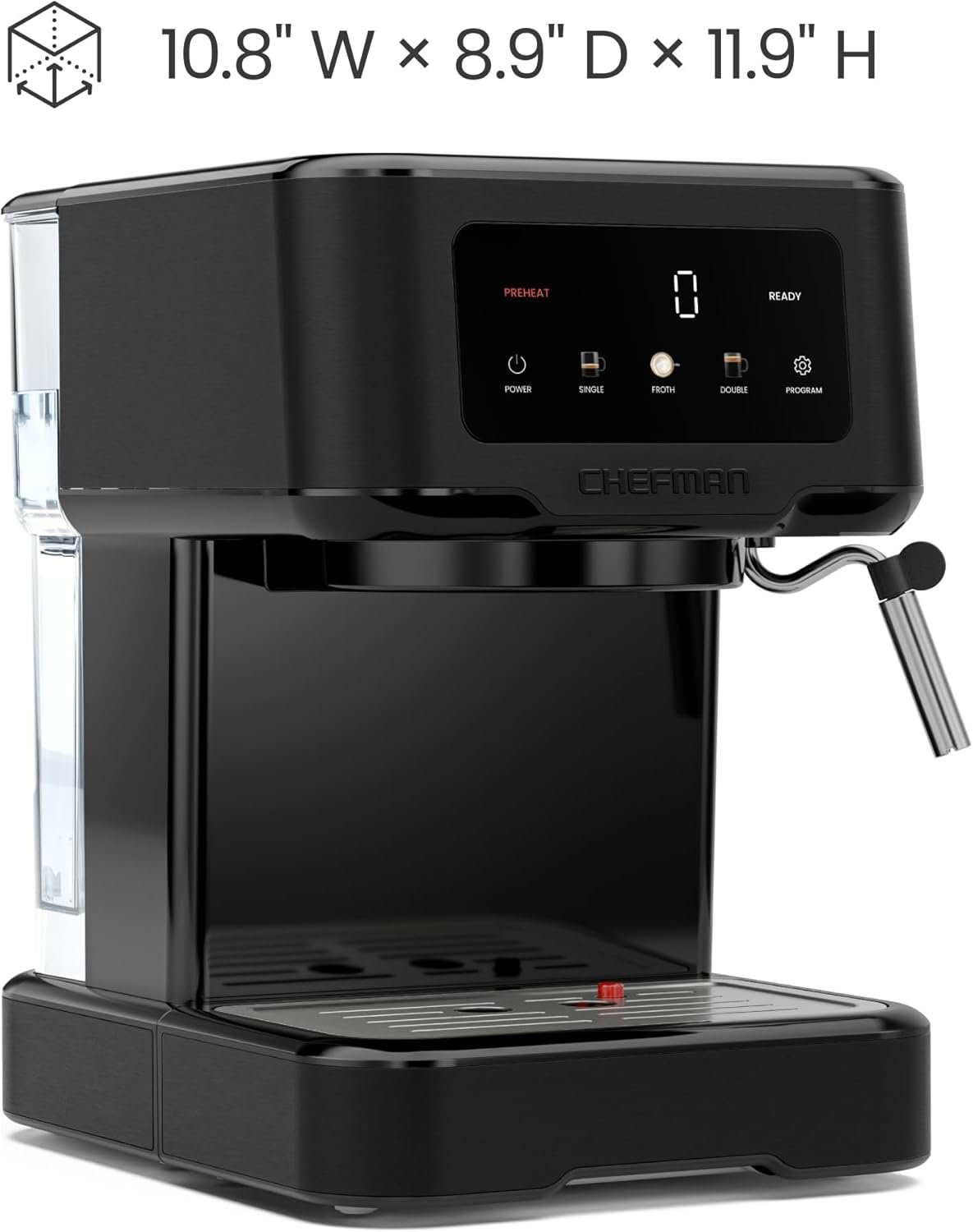 Chefman CraftBrew Espresso Machine, 15-Bar Pump Digital Espresso Maker w/Steam Wand for Latte & Cappuccino, Compact Espresso Coffee Machine w/ 1.5L Removable Water Reservoir – Black