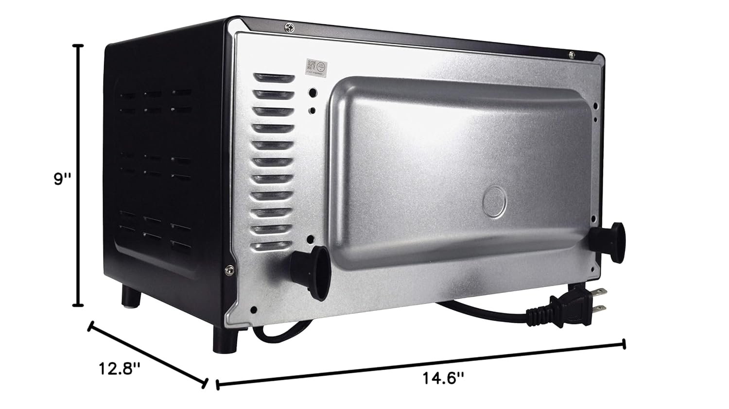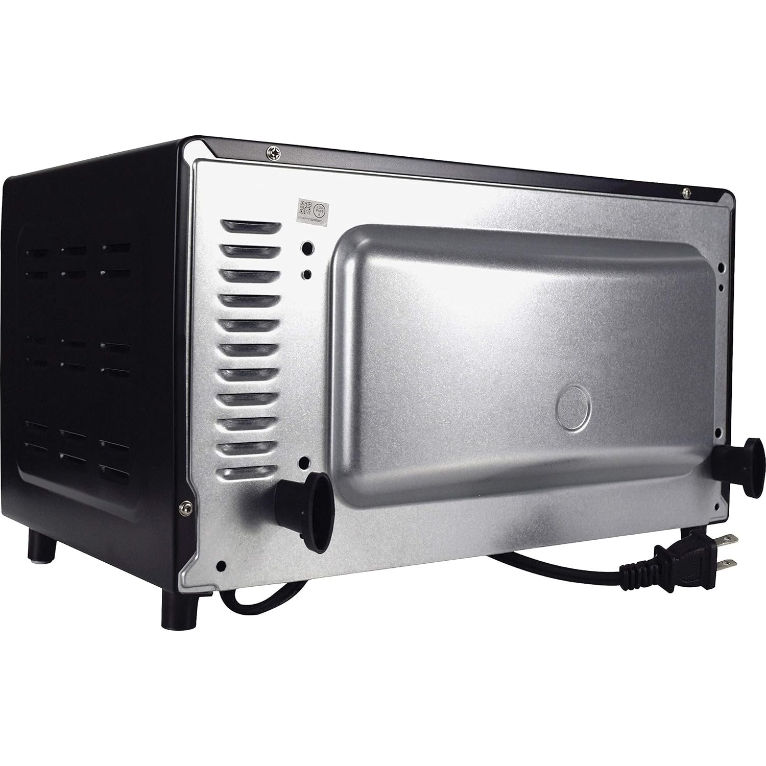 Versatile toaster oven offers a wide temperate range to let you easily toast, bake and broil foods. Easy-to-use dial controls including a 60-minute timer with light indicator ensure precise cooking results. Stainless steel body and shell of this Haus-Maid Toaster Oven provide a durable construction and professional look. Compact size is great for breakrooms and tight spaces. ETL Certified toaster oven also features a chrome slide-out rack, aluminum baking pan to ensure a perfect fit, crumb tray for easier cleaning, and two-prong, 2-1/2′ cord.