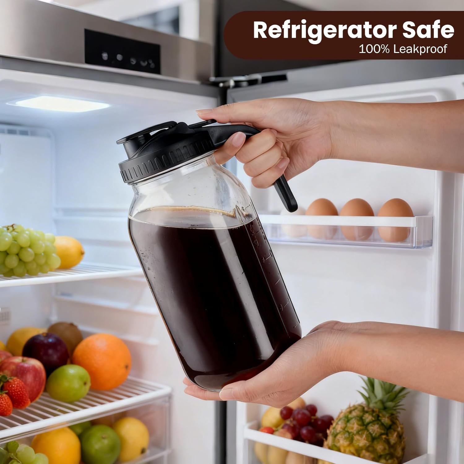 VERSATILE DESIGN: Multi-purpose pitcher suitable for cold brew coffee, iced tea, and fruit-infused beverages, with a wide-mouth opening for easy filling and cleaning