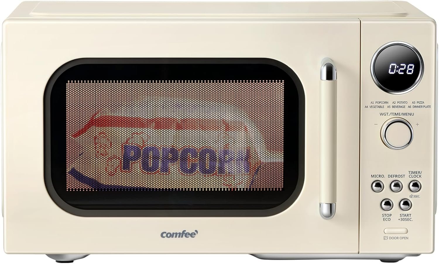 COMFEE’ Retro Microwave Oven, Small Microwave with 6 Auto Menus, 0.9 cu.ft Countertop Compact Microwave with Multi-stage Cooking, Mute Function, LED digital, Apricot/900W, CMO-MMP02AA(AT)