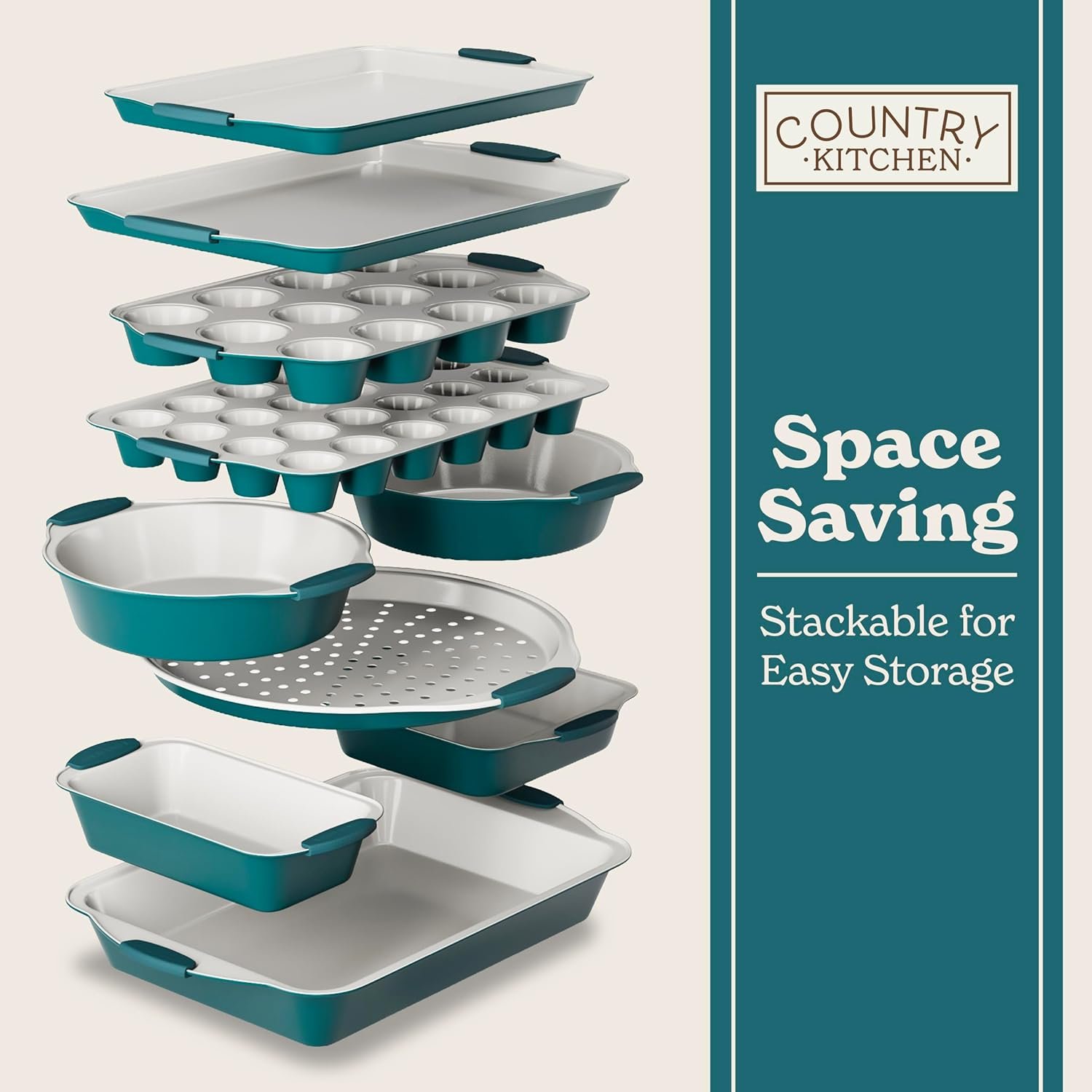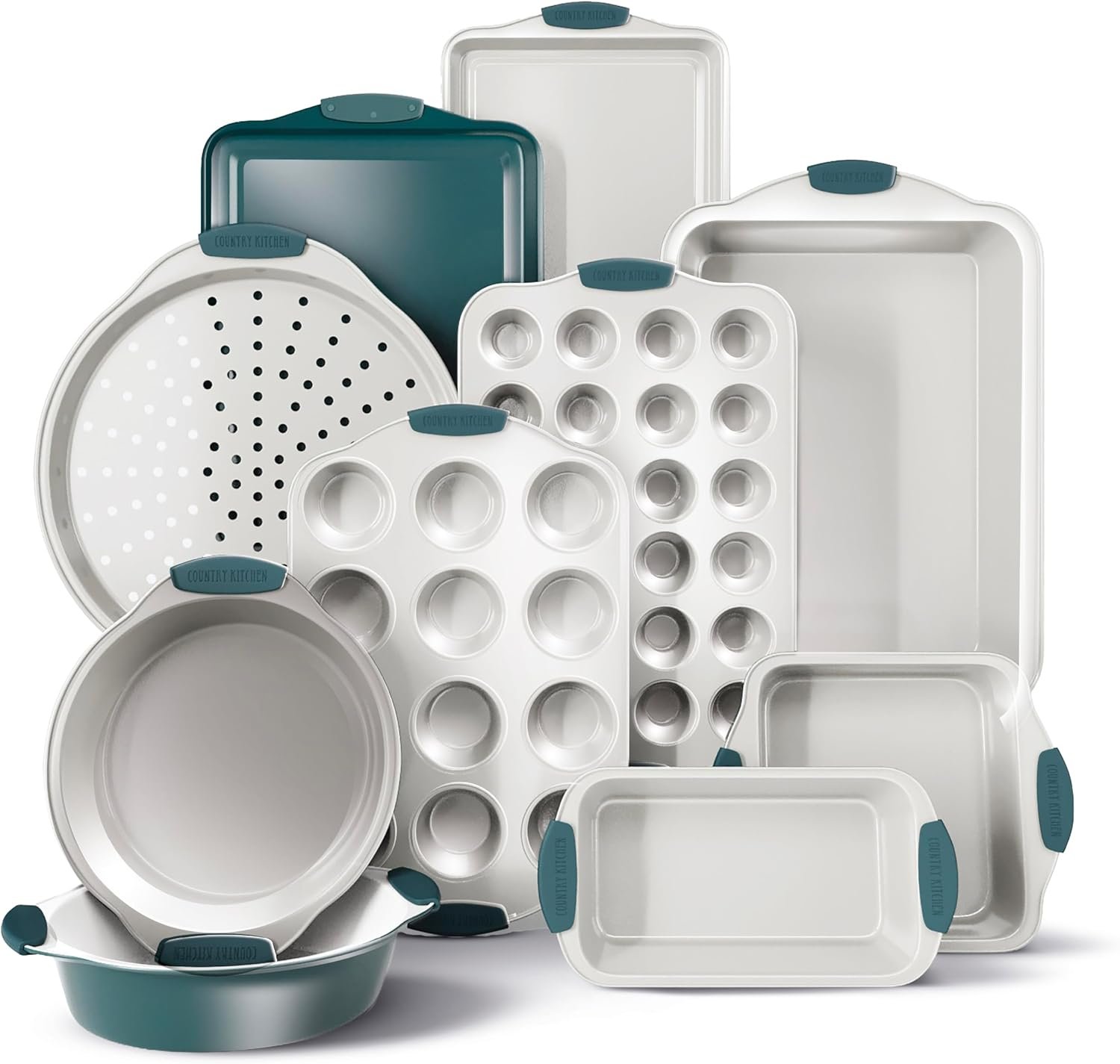 Country Kitchen Nonstick Stackable Bakeware Set – Heavy Duty, Durable, Easy Release Baking Set, Sage, 10 Pcs