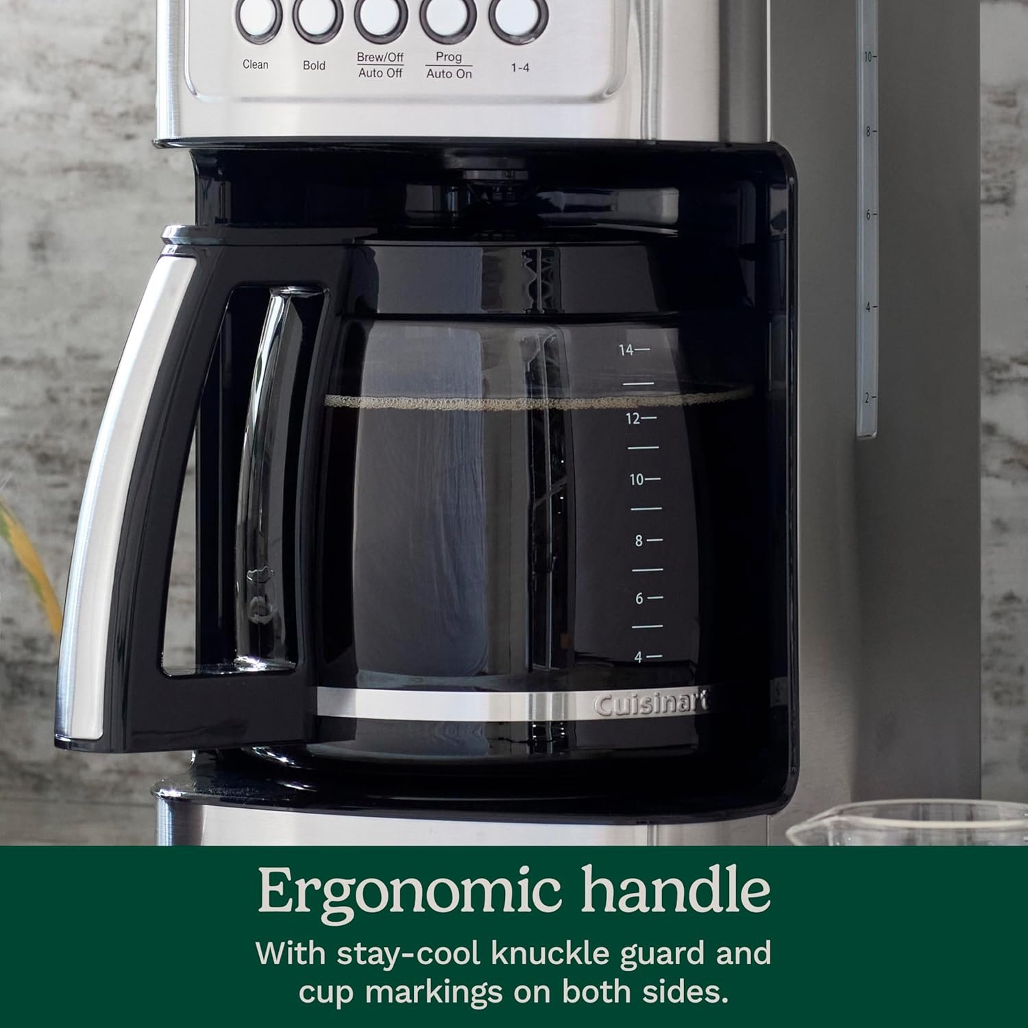 BREWER MARKINGS: Carafe brewer markings range from 2-14 cups of liquid