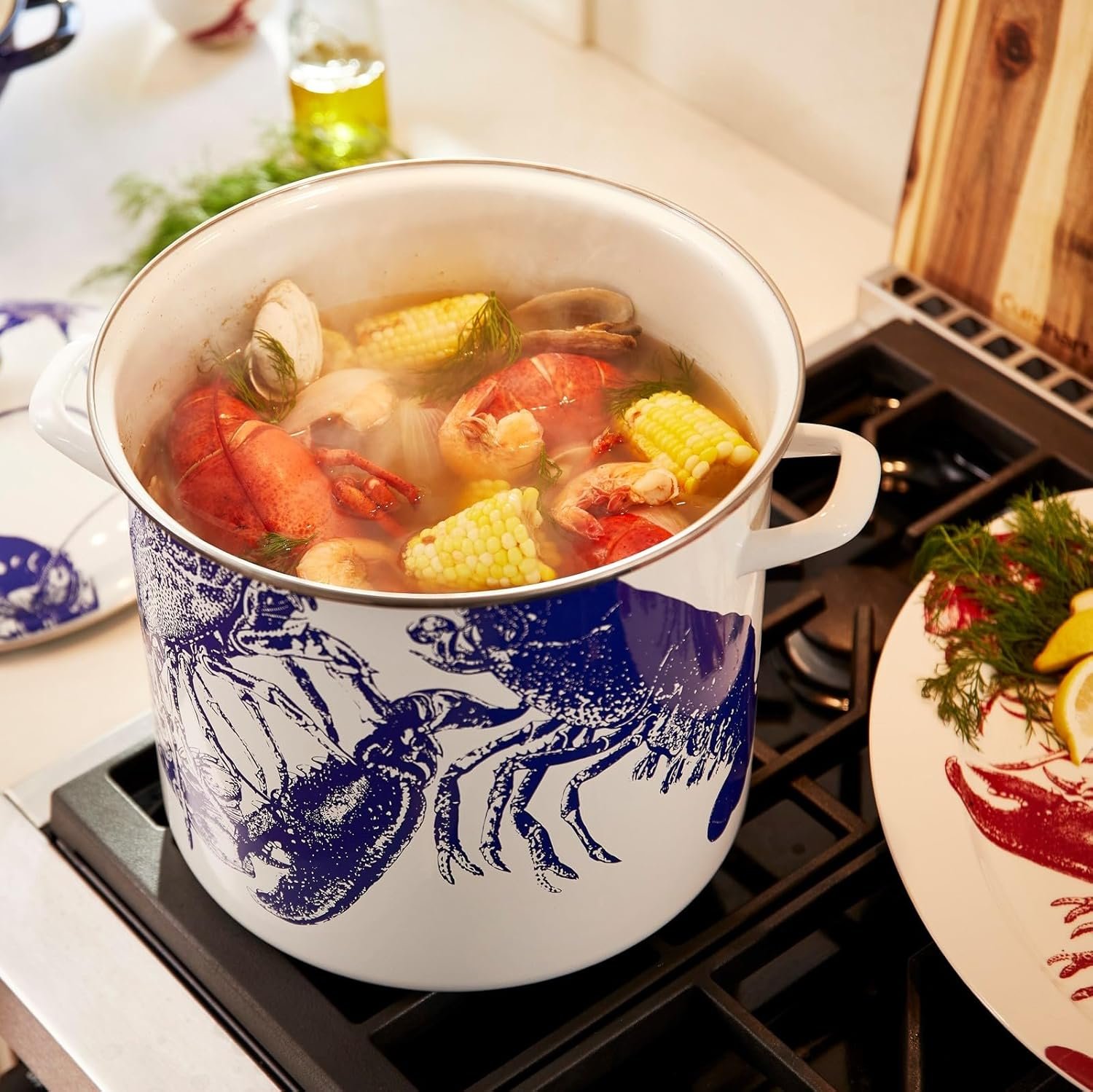 This large capacity stockpot is ideal for summer clambakes, cooking up lobsters and entertaining a crowd. Great for big batches of stock, chili or soup.