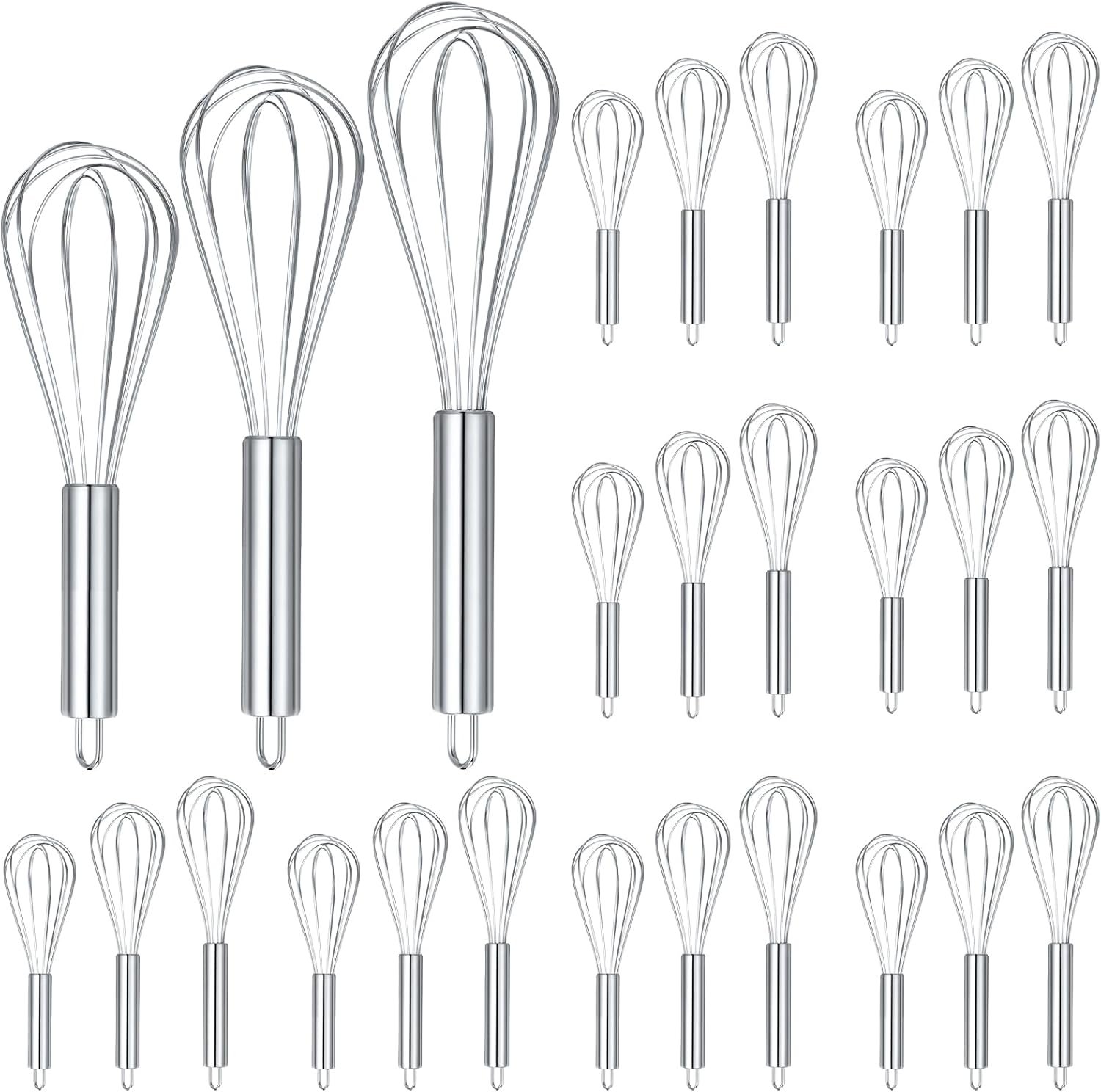 Domensi 24 Pcs 8″ 10″ 12″ Whisks Set Kitchen Whisks for Cooking Heat Resistant Stainless Steel Balloon Wire Whisk Bulk for Non Stick Cookware Blending Stirring Valentines Day Baking