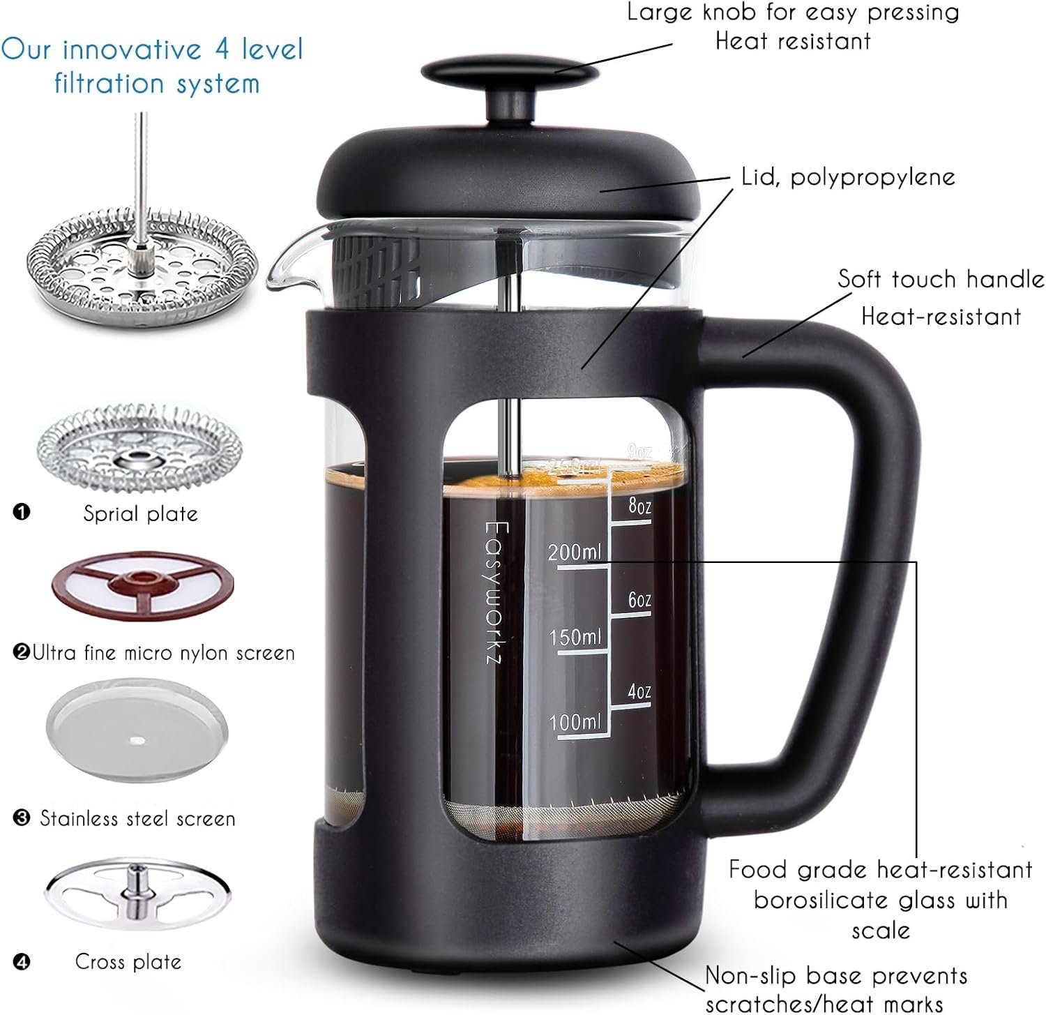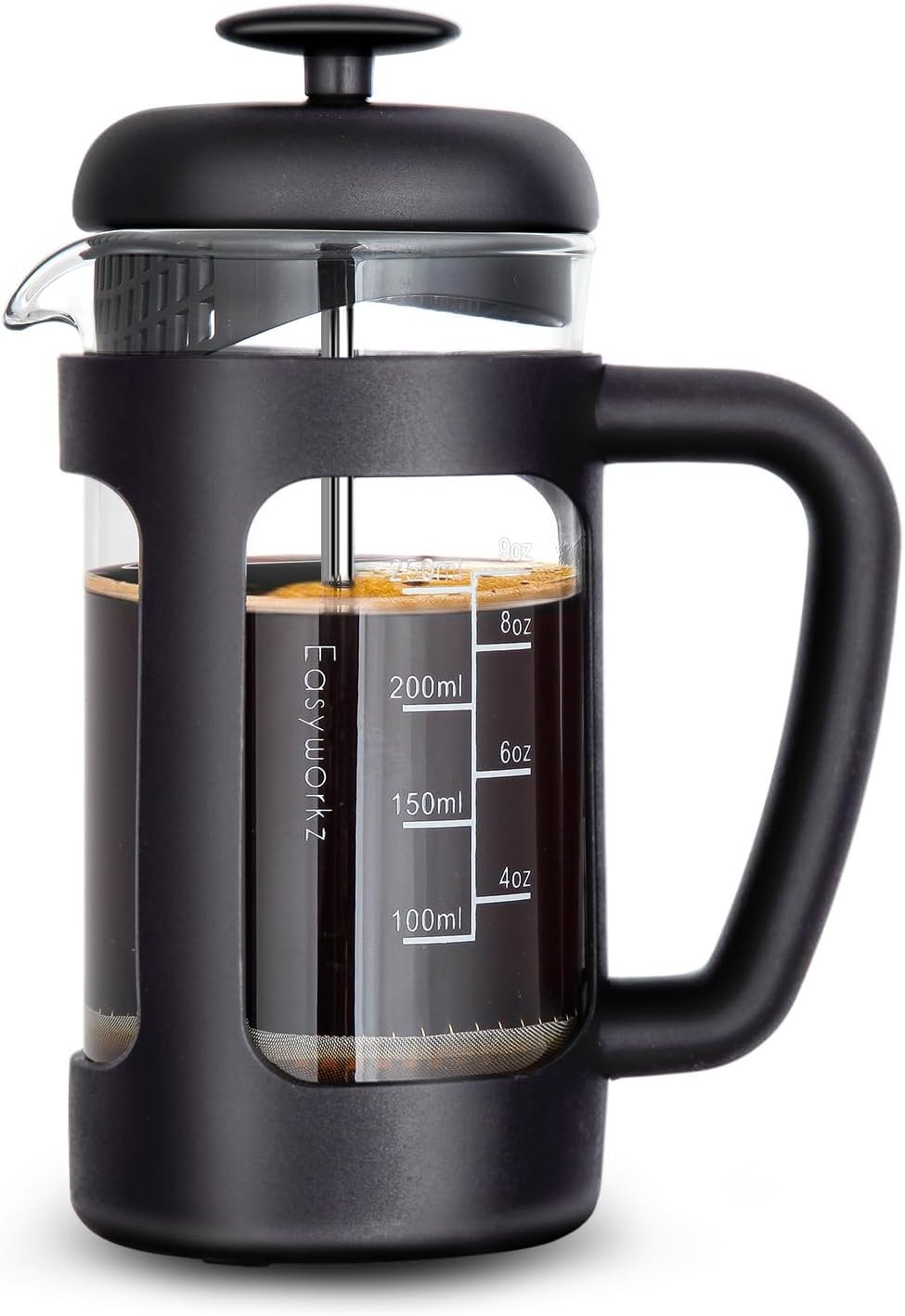 Easyworkz French Press 12 oz Coffee Tea Maker with Borosilicate Glass,Soft Grip Handle