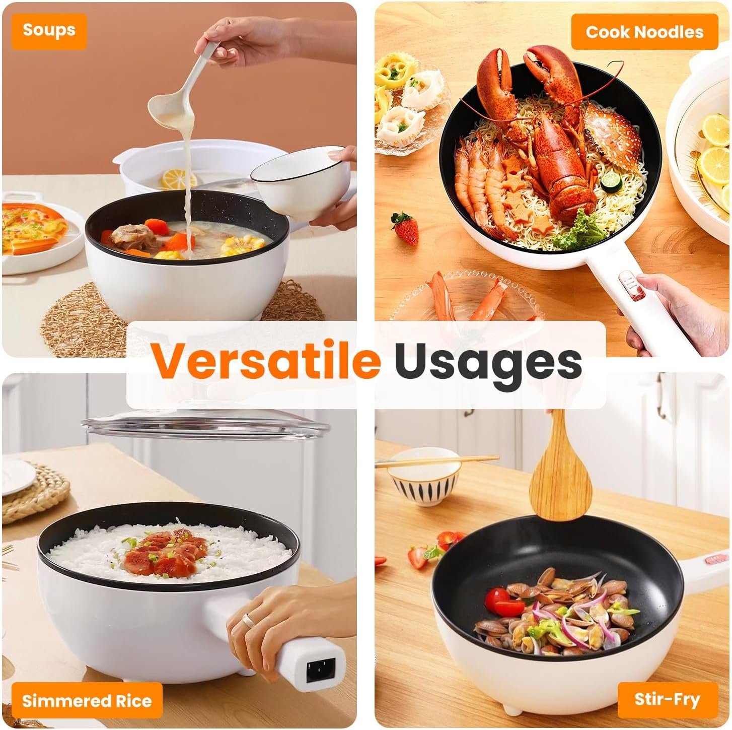【Safety & Visibility Features】: An advanced heating element ensures efficient, even cooking. The over-heat and dry-boil protection provide a max protection while cooking. The tempered glass lid features a steam vent. Besides, clear glass lid with vent hole allows you to observe the cooking of ingredients conveniently.