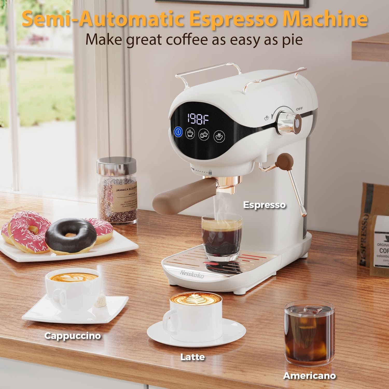 Espresso Machine with Steam Milk Frother Semi Automatic 20 Bar Compact White with Touch Screen for home Cafetera Espresso, Latte, Cappuccino, Americano, Macchiato