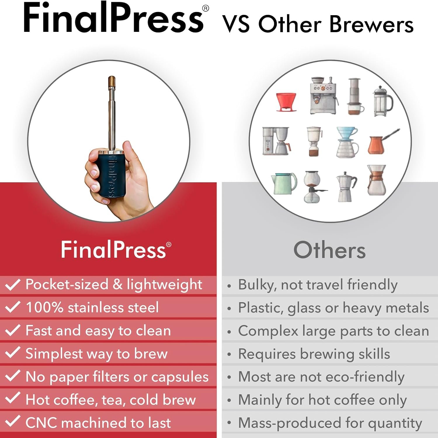 FinalPress Original Coffee & Tea Maker – Portable Stainless Steel Micro French Press – Patented 3-in-1 Technology for Hot, Iced & Cold Brew – Perfect for Home, Camping & Travel