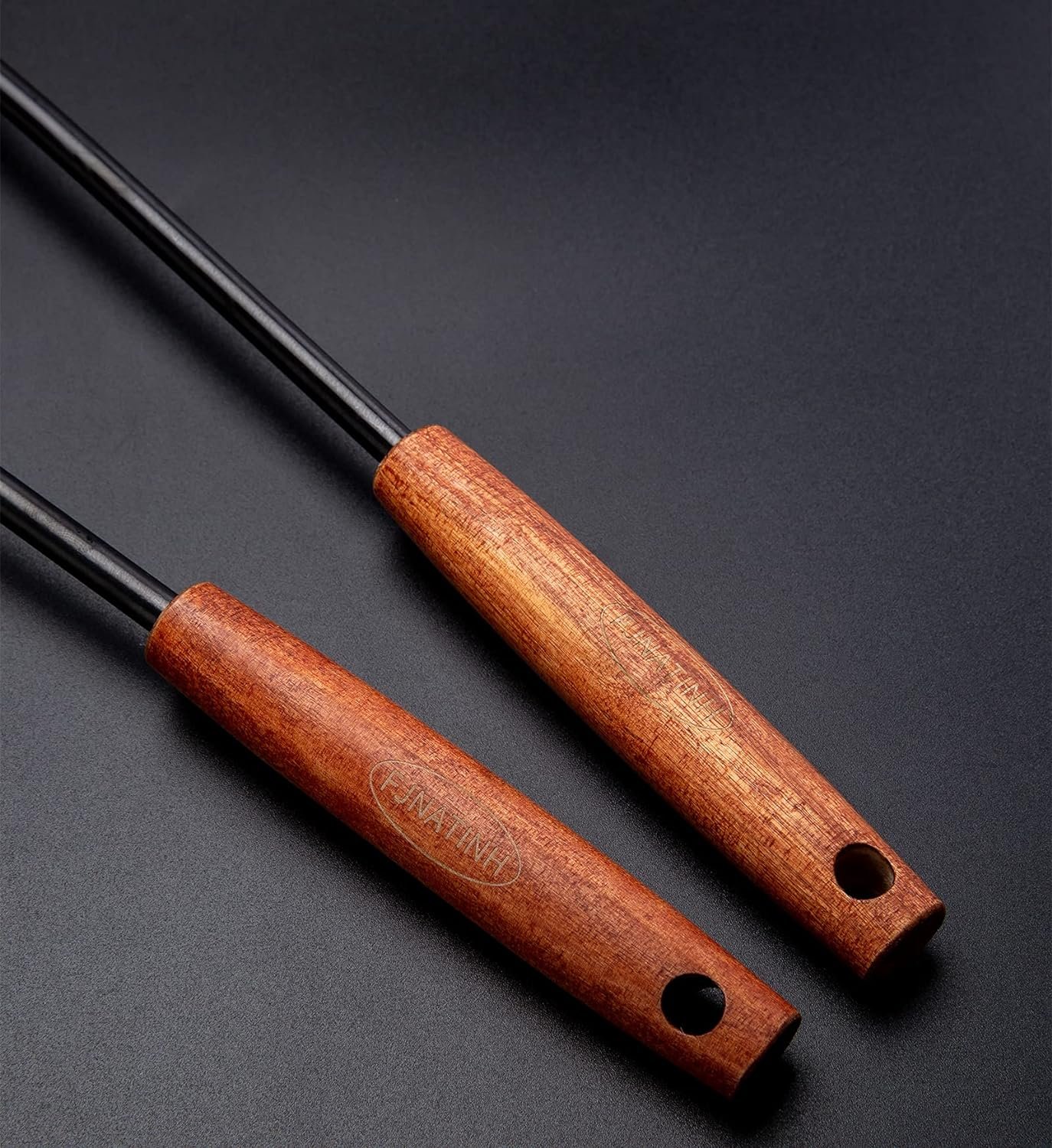 【Wok Spatula Material】: Using high temperature black plating technology.201 stainless steel & wood handle, durable, easy to clean, not easy to have dents, cracks, rust or fall off. Excellent workmanship, smooth edges and lines, the welding is superb