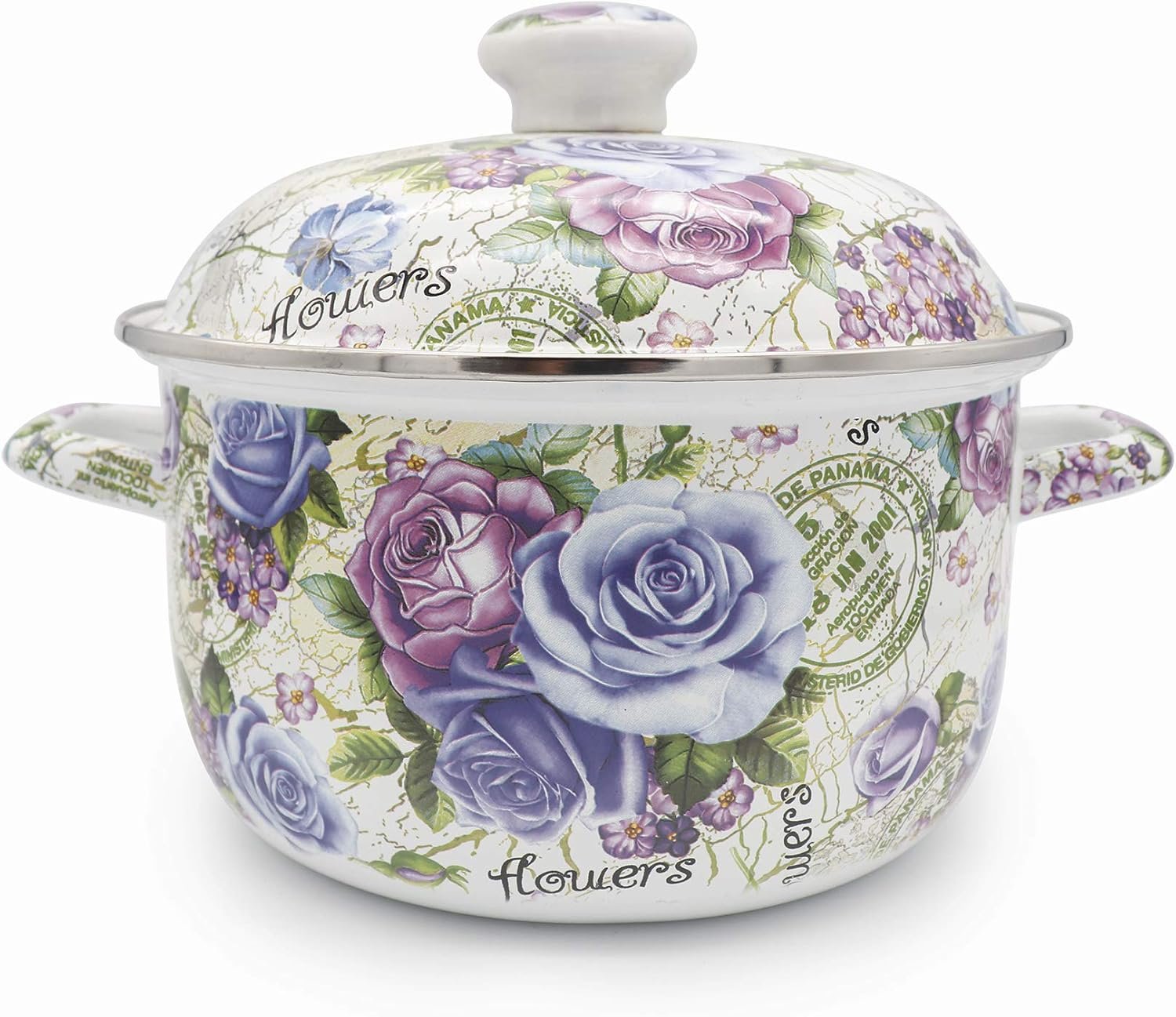 FLOWER VINTAGE-STYLED: This vintage-styled stockpot boasts a colorful, easy to clean enamel exterior that adds refreshing color to the kitchen and is stain resistant, best gift for your families or your friends!