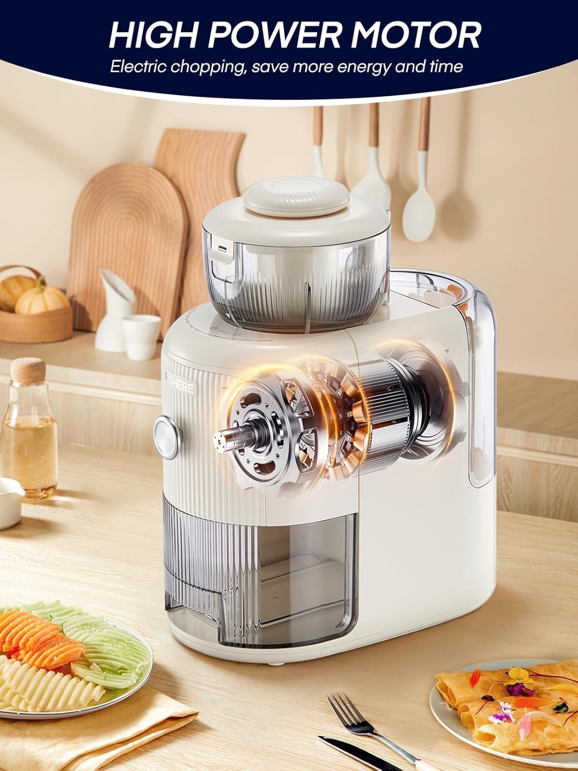 【Save Prep-Time】 Powerful pure copper motor, process two pounds of hard carrots in just 90 seconds, significantly boosting efficiency for faster dinner prep. Our vegetable chopper have 3.6-inch wide chute allows you to process whole potatoes and large vegetables without pre-cutting saving you an extra step