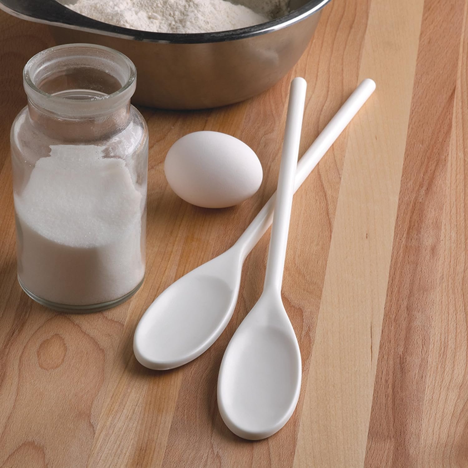 Set of 2, 12-Inch mixing/stirring spoons, hi-tech polypropylene plastic. dishwasher safe. easy to grip, durable plastic.
