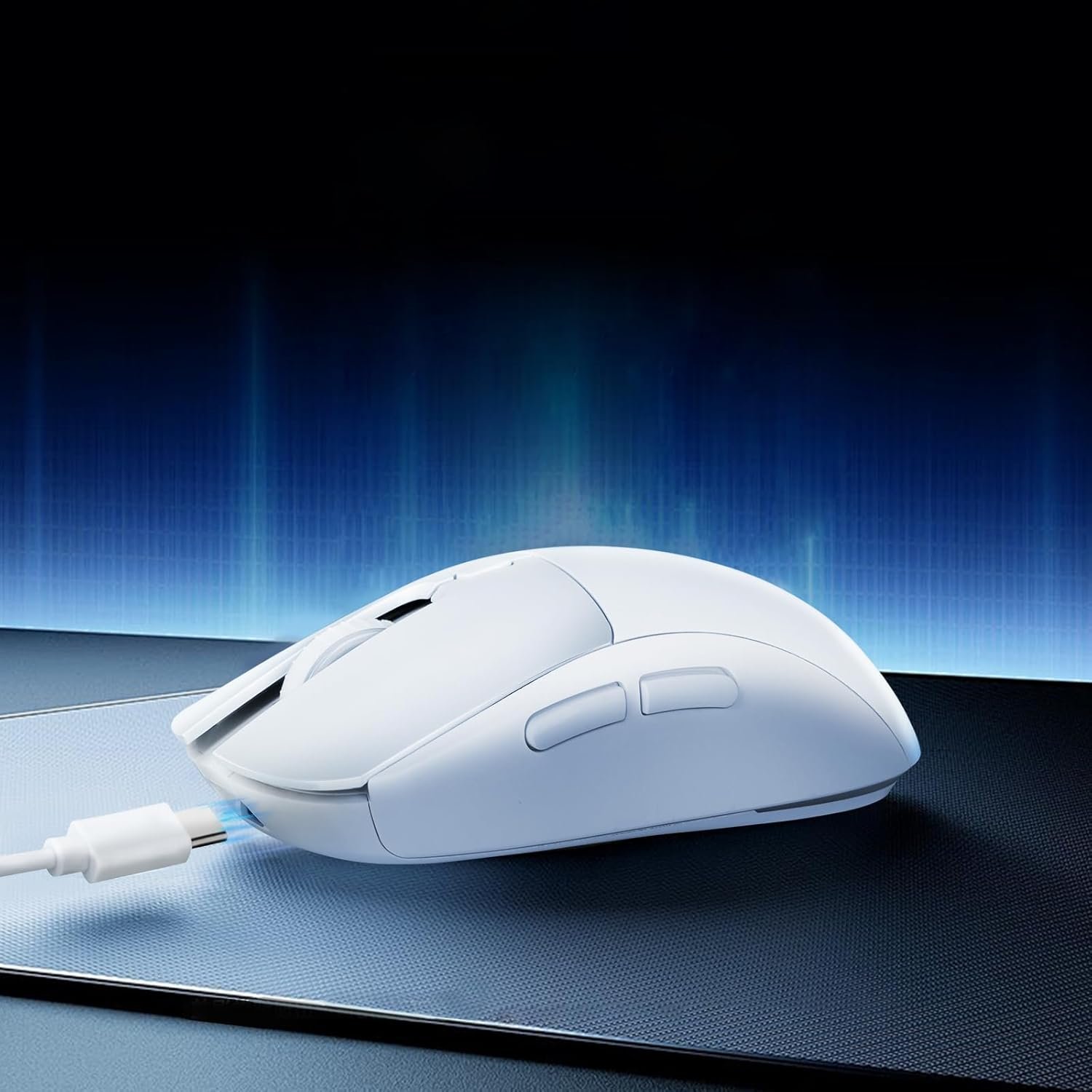 Gaming Mouse, Rechargeable Computer Mouse with with 2 Side Buttons, Type-C Adapter for Laptop, PC, Notebook – White