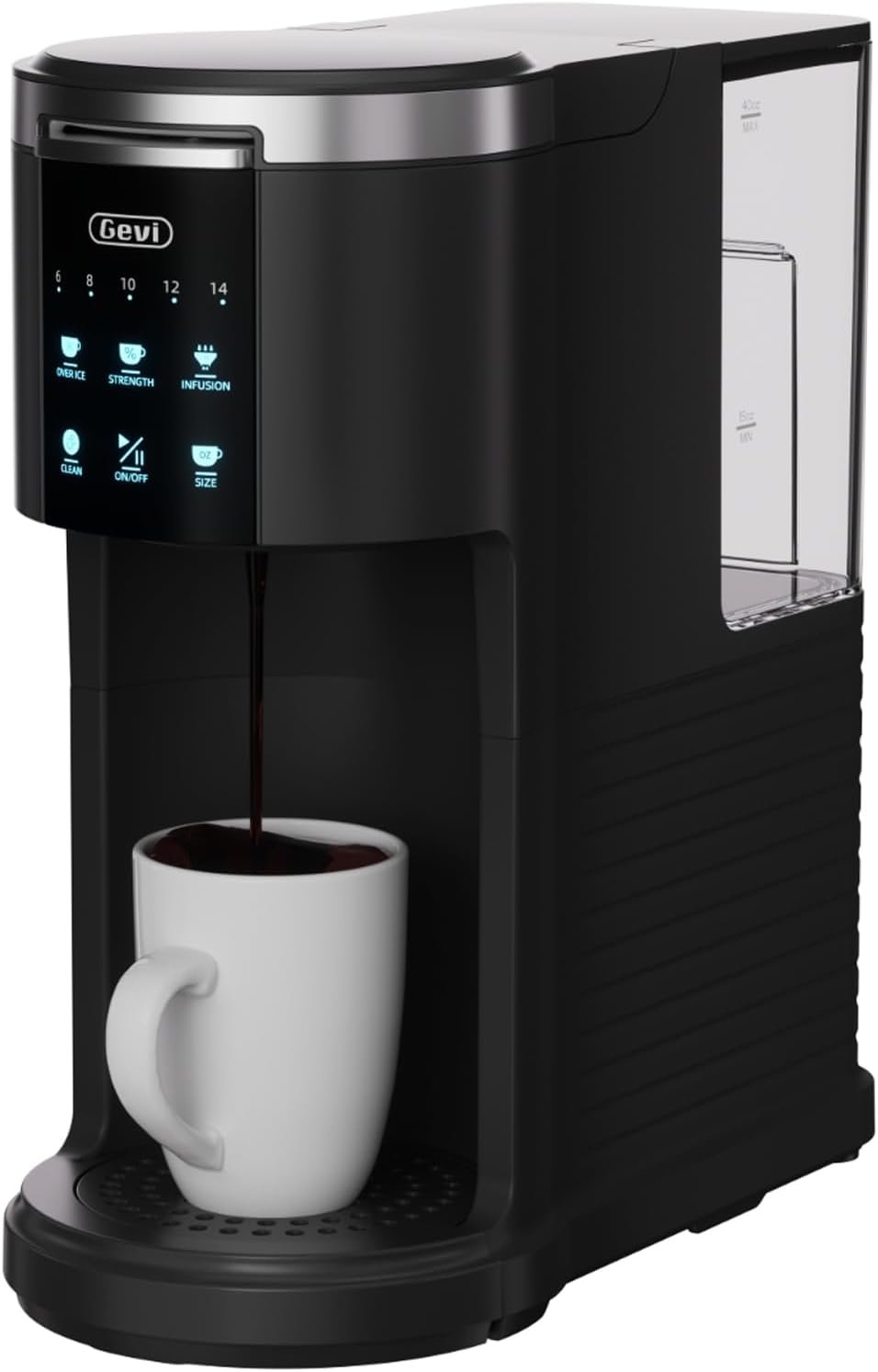 Gevi Single Serve Coffee Maker, Compatible with Pods & Ground Coffee, 40oz Removable Water Reservoir, 5 Brew Sizes (6-14oz), Compact for Kitchen Use, Black