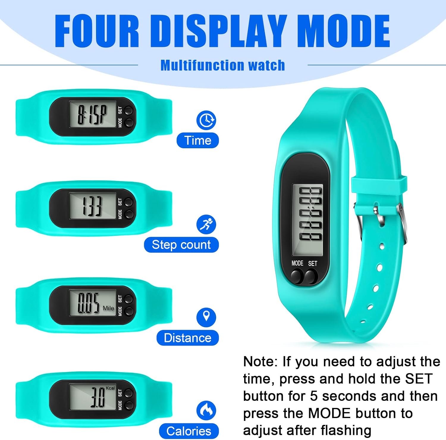 Abundant Quantity for User Convenience: enjoy an abundant quantity as you will receive 24 pieces of pedometer for walking bracelet in 3 assorted colors, including mint, blue and black; These are ample for your daily use and replacement needs, or you could share them with your loved ones; Your fitness journey is now made colorful and exciting with these pedometer bracelets