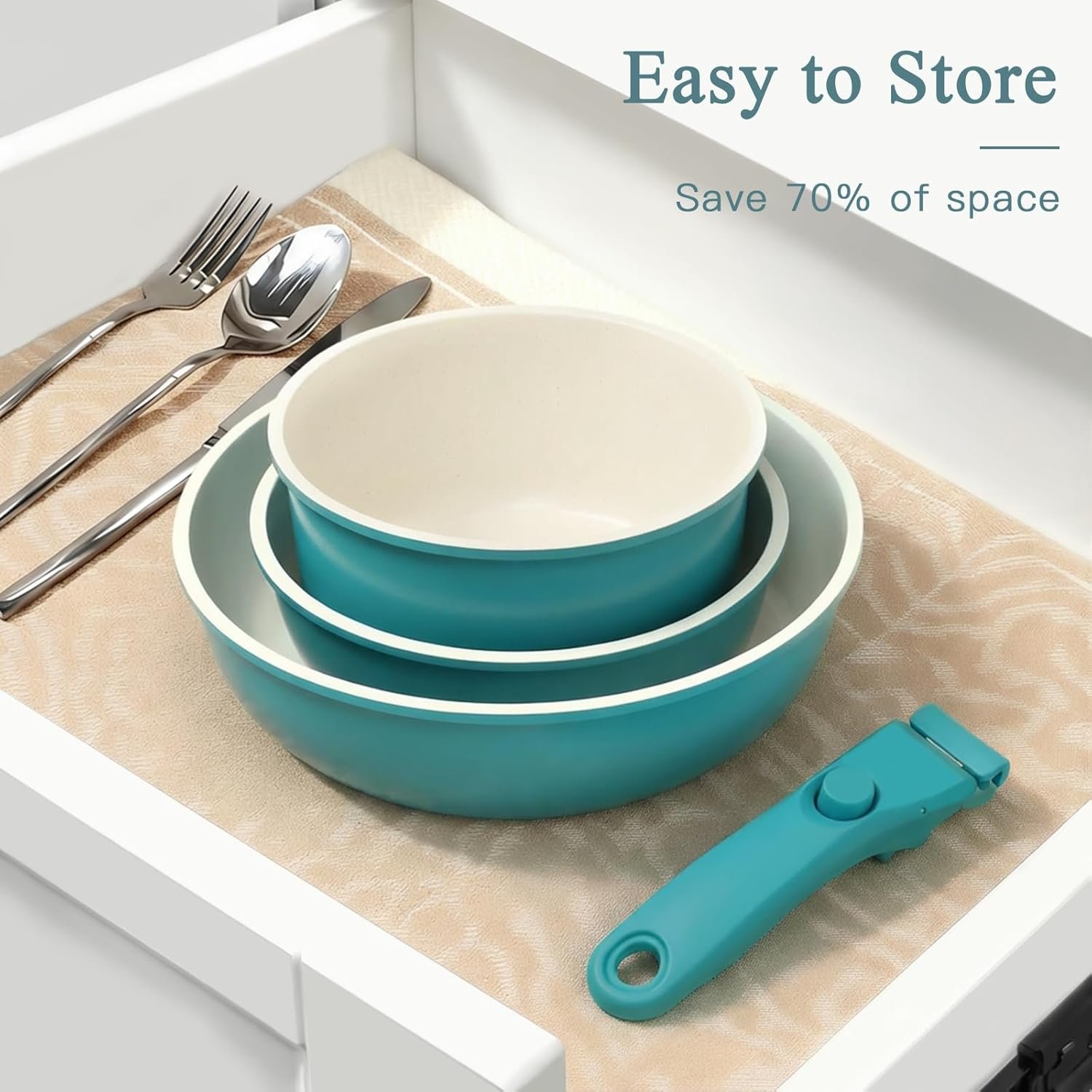 Ceramic Pots and Pans Set Non Stick, Nonstick Detachable Handle Cookware Sets