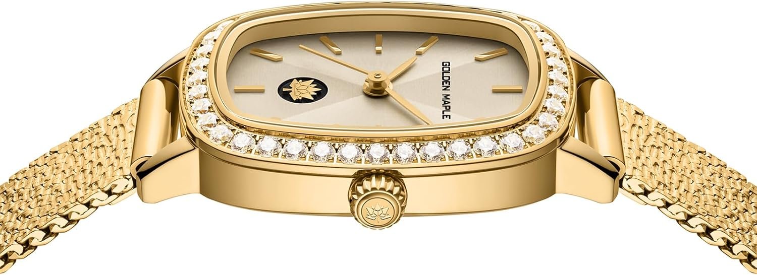 GOLDEN MAPLE Watches for Women, Dainty Gold Watch with Small Stainless Steel Case, Quartz Movement and Water Resistant, Adjustable Mesh Band