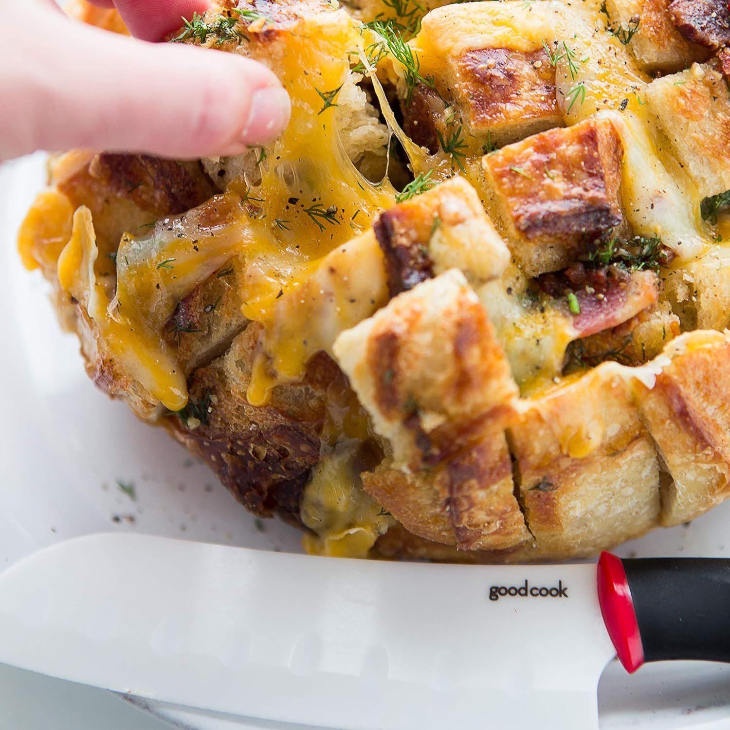 With a blade that won’t rust or corrode, this 5-inch santoku knife will become a favorite in the kitchen. The ceramic blade is sharp and the granton edge, with its shallow divots, minimizes food sticking to the blade during slicing. For faster cutting. The comfort-grip handle is easy to hold, even when hands are wet or messy, so it’s great for cutting freshly-washed produce and juicy melons. The contoured handle promotes a proper knife grip for easy, precise cutting. When all the work is done, this knife is top rack dishwasher safe. For storage, a plastic sheath is included.