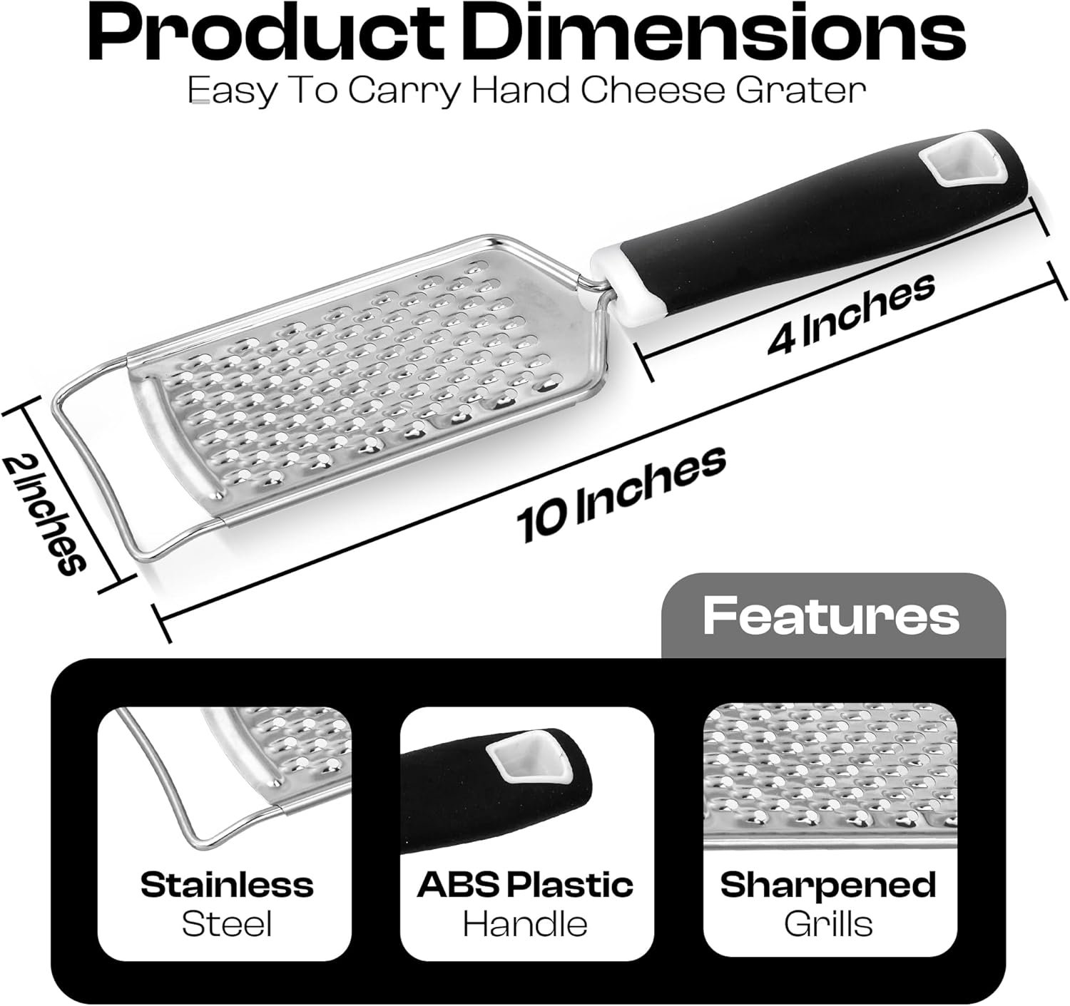 Handheld Cheese Grater & Cheese Shredder – Stainless Steel, Rust-Proof, Non-Slip Handle, Durable Flat Grater for Parmesan, Chocolate, Spices, Vegetables & More – Multi-Purpose & Easy to Clean.