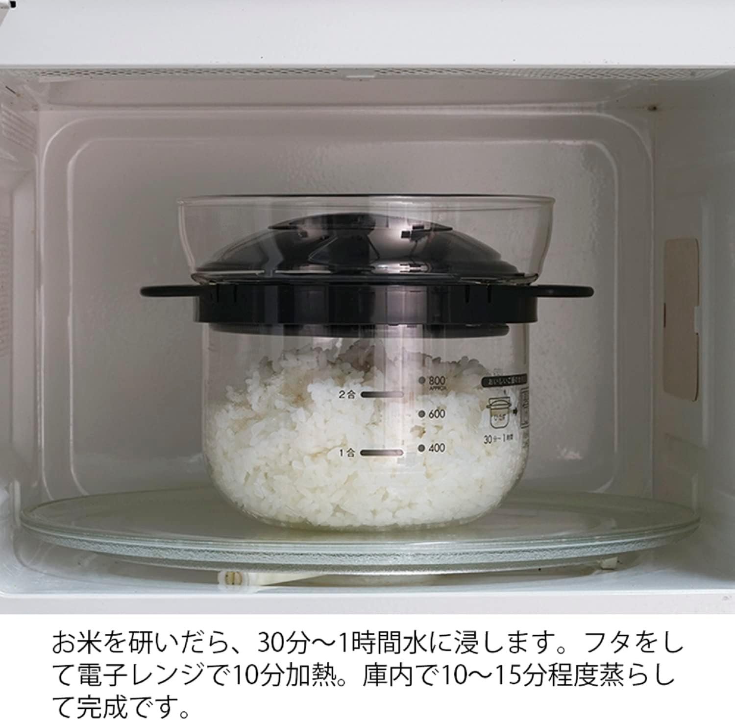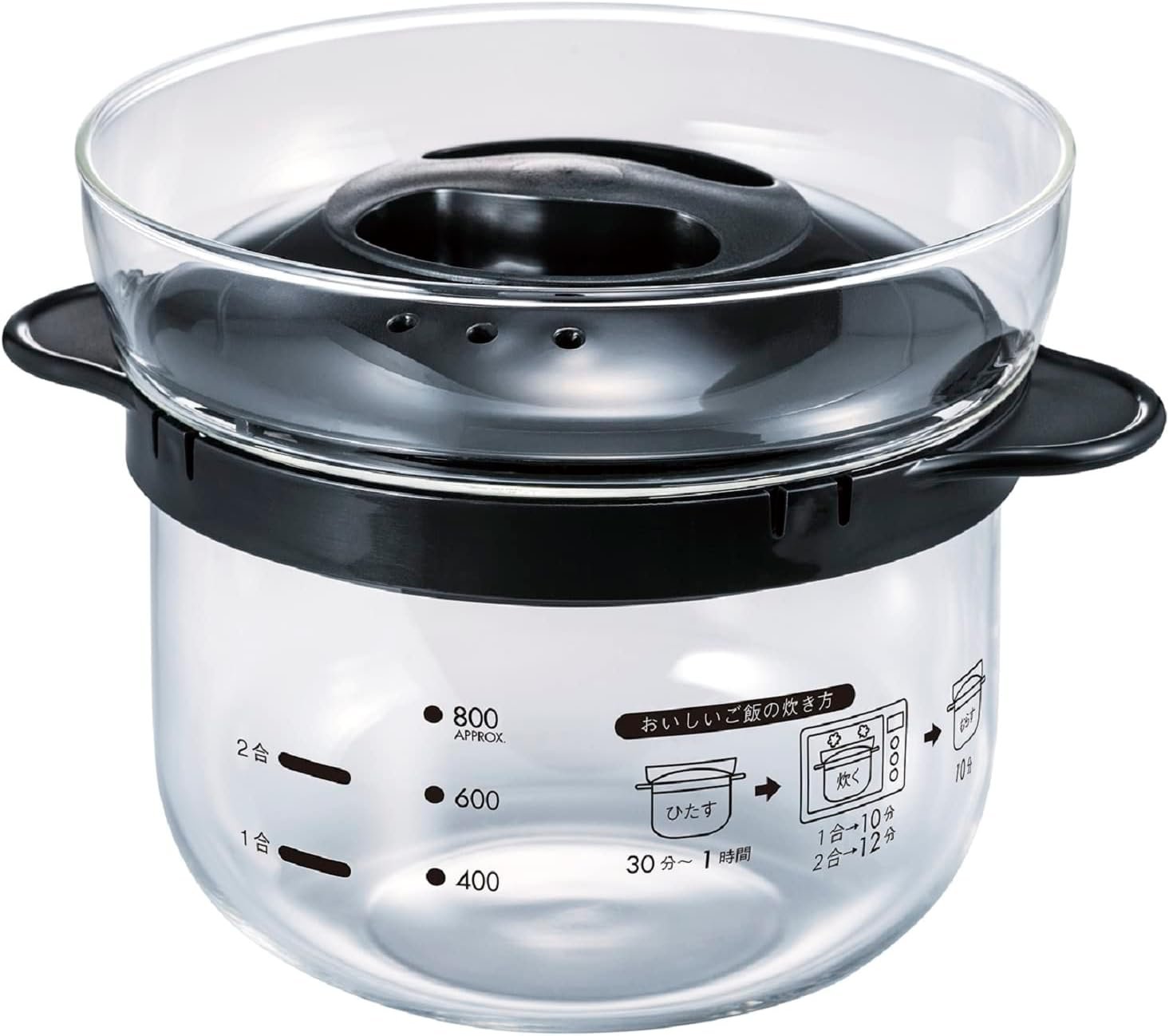 HARIO XRCN-2-B Glass Microwave Rice Pot, 1 to 2 Cups, For Microwaves, Black, 1 to 2 Cups, Made in Japan