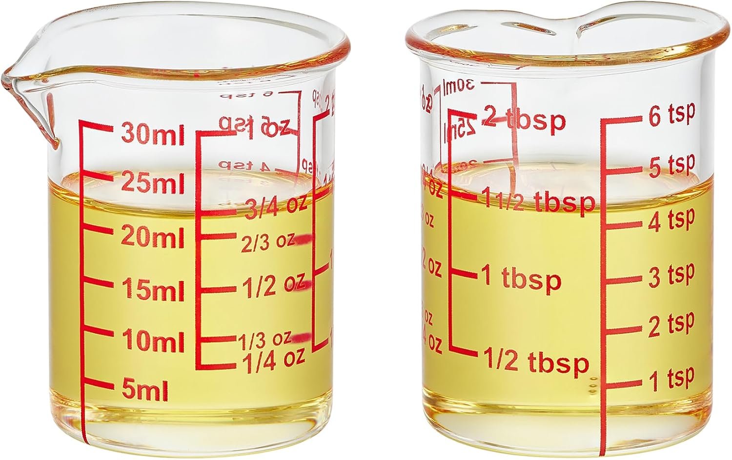 High Borosilicate Glass Measuring Cup with V-Shaped Spout, 30ml (1oz) | Pack of 2 – Precision Glass Measuring Cup for Kitchen & Bar