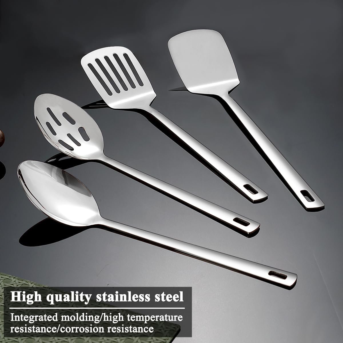 1. All-in-One Compact Cooking Solution:The Homquen 4 – piece Stainless Steel Kitchen Utensils Set includes a cooking solid spoon, slotted spoon, slotted turner, and solid turner, covering all your basic cooking needs. Whether you’re stirring sauces, flipping pancakes, or serving dishes, this set has you covered.