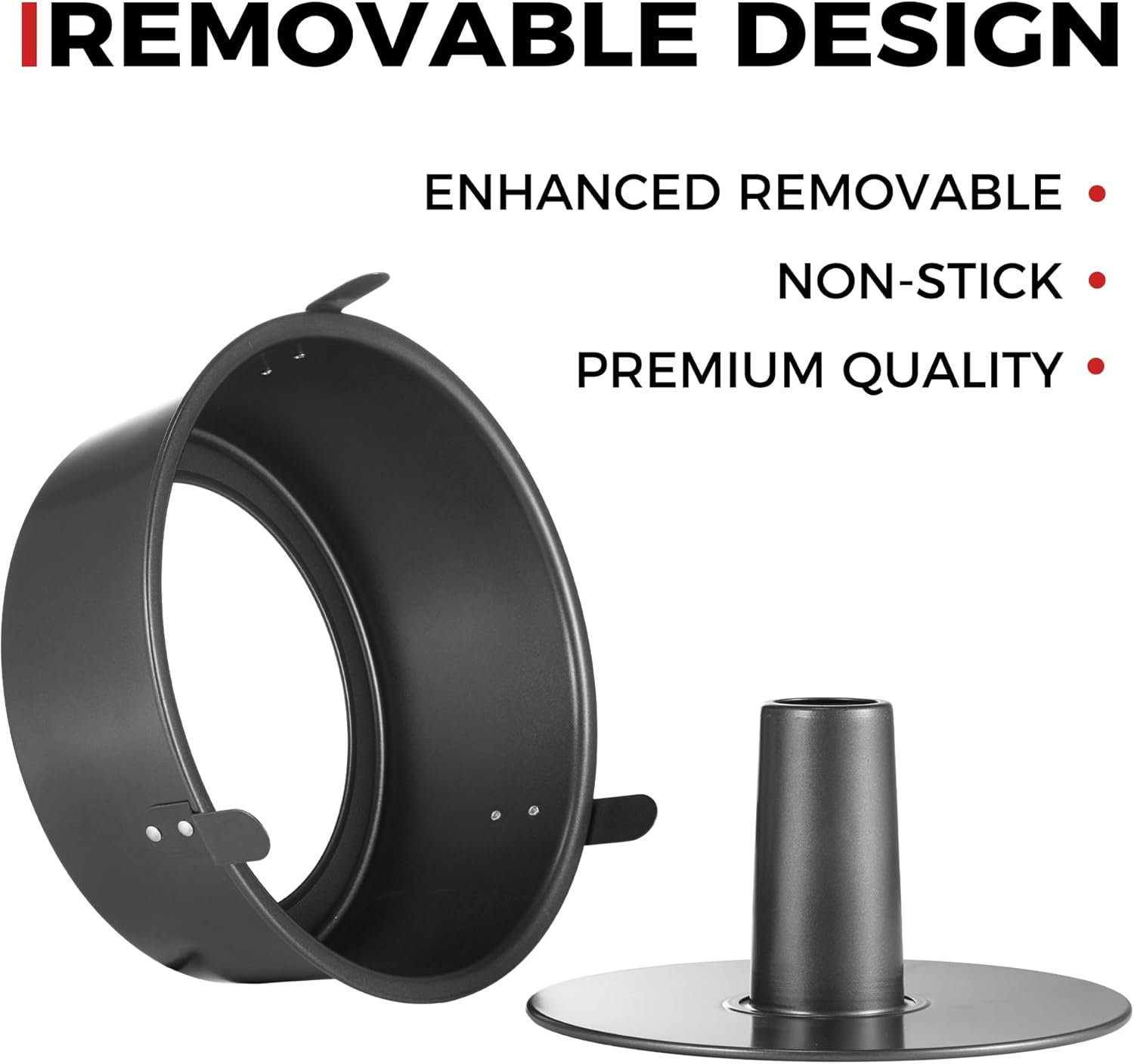 PREMIUM EXTRA-THICK MATERIAL – Made from carbon steel that is 37% thicker, these durable tube cake pans are crafted from heavy-gauge carbon steel for superior stability, even heat distribution, and long-lasting durability. With a heat resistance of up to 450℉, they are designed to withstand high temperatures for years to come.