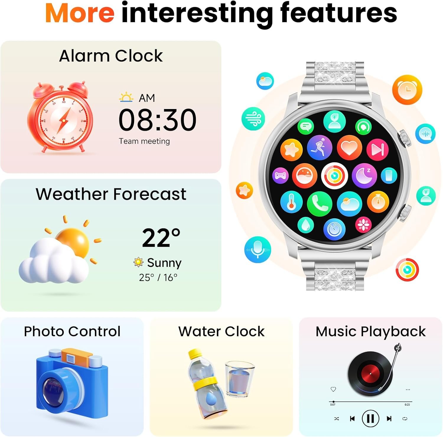 🏆【Bluetooth 5.2 Call&Message Notification】With this Bluetooth call smart watches for women, You can make, answer and refuse a call on your wrist, also receive message/app notification, (Note: Can’t reply message) .