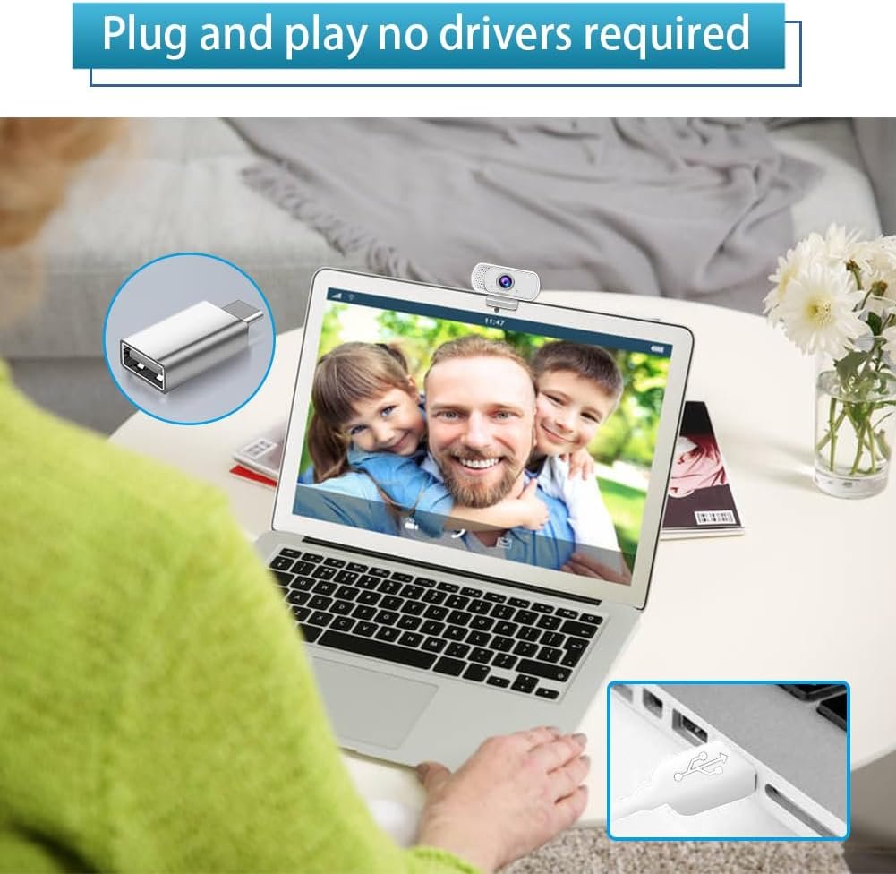 【Wide Compatibility & USB C Adapter】Our webcam with USB C adapter, Not only convenient for Macbook Pro/Air users, But also compatible with a wide range of operating systems, including Mac OS , Windows and Android or higher version operation systems. Perfect for Microsoft Teams, Zoom, Skype, Facetime, Facebook,WeChat, QQ ,YouTube and any other popular video calling software.