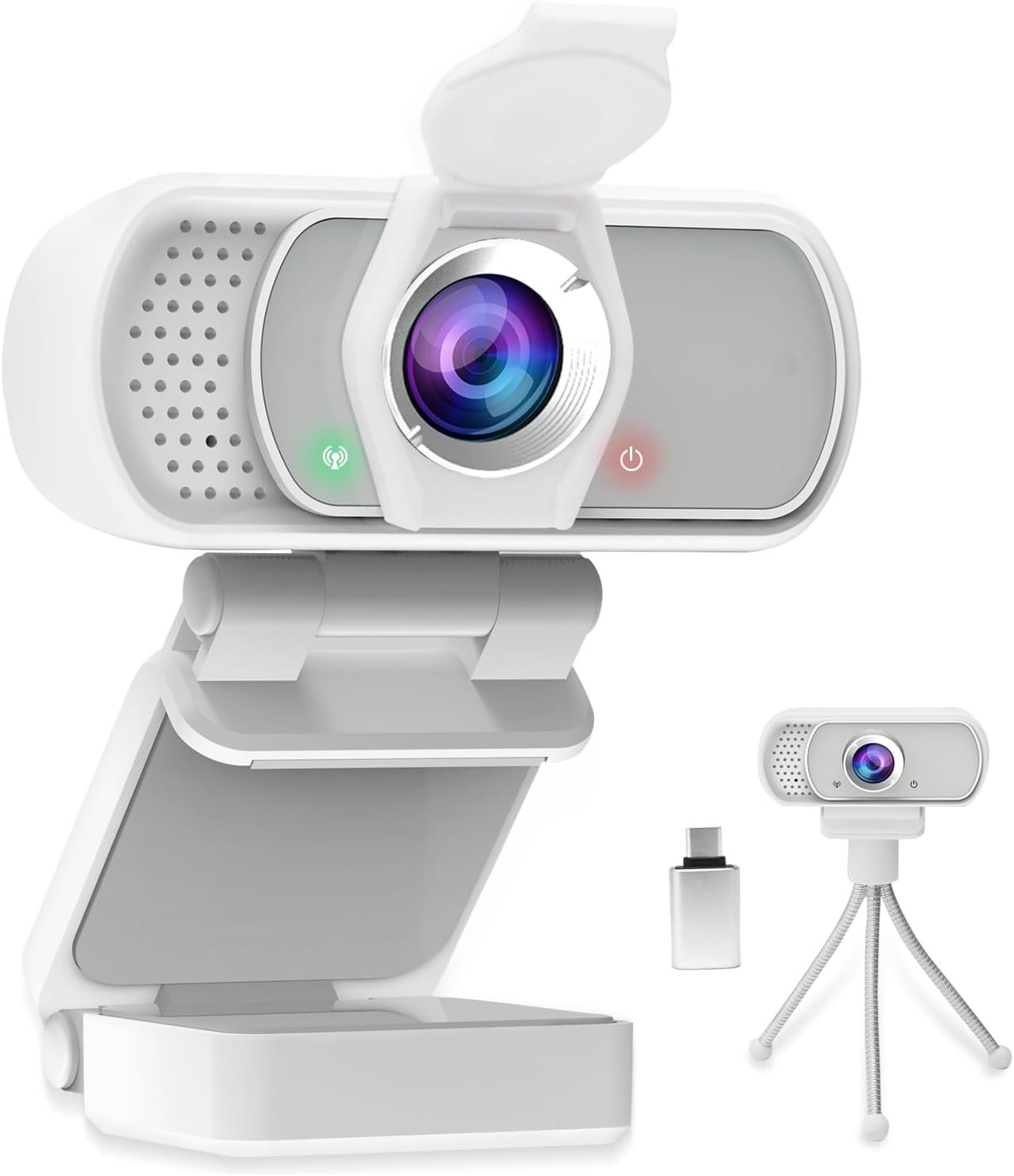 【Webcam With Free Privacy Cover, USB C Adapter & Tripod Stand】 We will provide a FREE Privacy Cover and Tripod Stand with the webcam for you. You are welcomed to contact us if you have any technical issues about web camera.