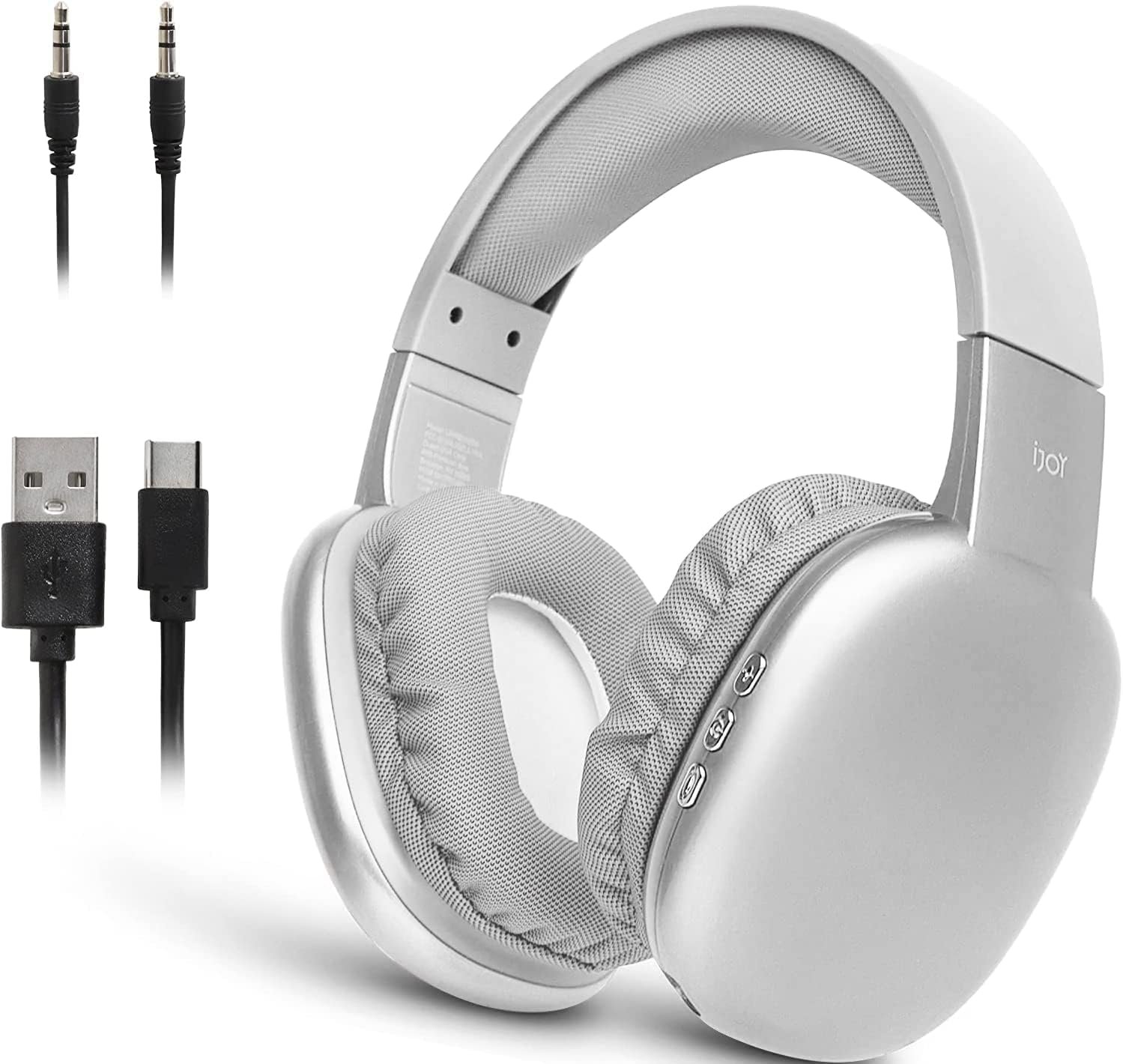 iJoy Ultra Wireless Over-Ear Bluetooth Headphones with Mic, Up to 10 Hours Playtime, Bluetooth Headset 33Ft Range with Backup AUX Cable & SD Slot, Wireless Headphones for Gaming, Work & Gym (Silver)