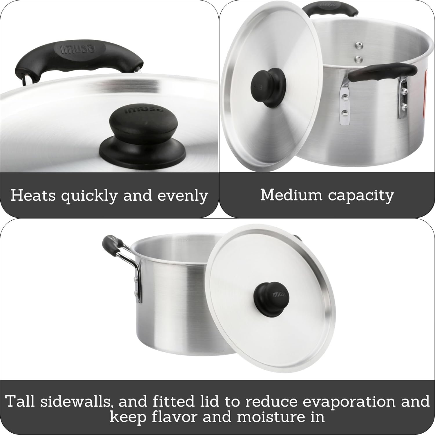 IMUSA USA, Silver IMU-60008 Aluminum Stock Pot with Lid 8 Quart