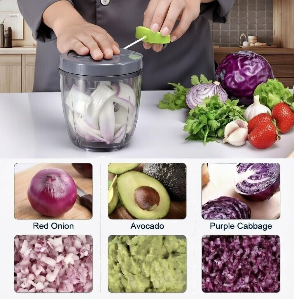 ✅ FAST & EFFORTLESS CHOPPING Pull the cord a few times and chop onions, garlic, herbs, fruits, and vegetables in seconds — no electricity needed.
