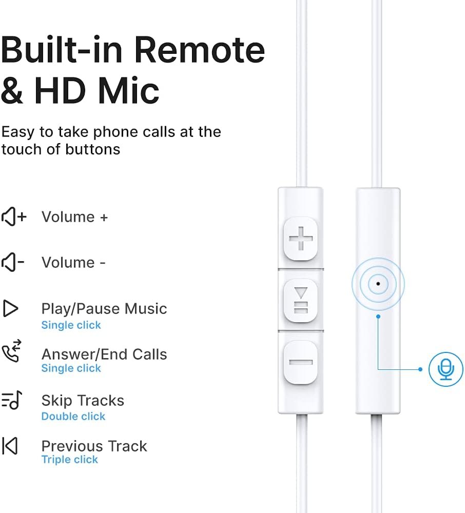 This wired iPhone earphones with microphone has large drivers and can better envelop your ears with full, supports high-res audio files and can upscale your music tracks to make them sound as true to life as possible.