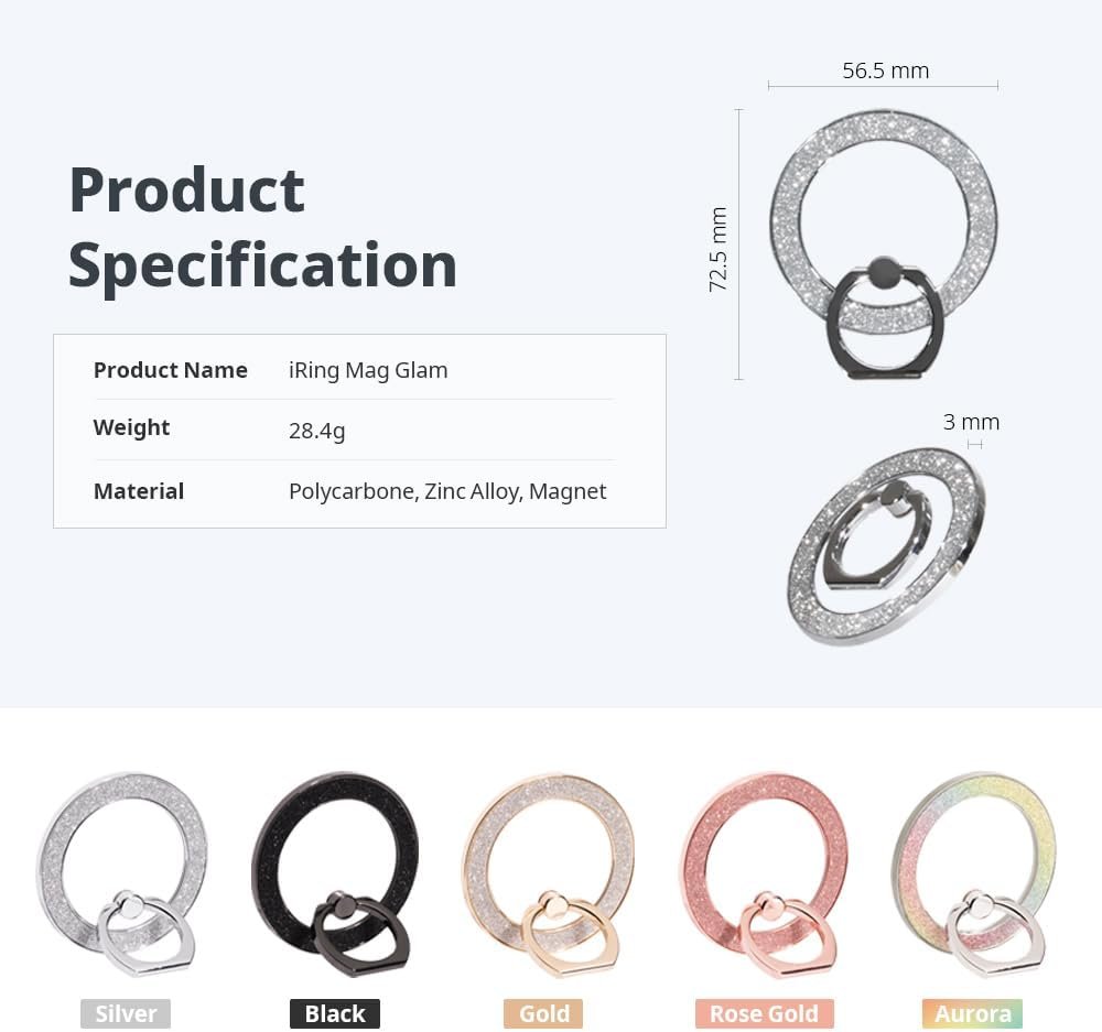 Patented Durable Ring Structure – Designed for long-lasting use, the iRing Mag Glitter features a patented ring structure that enhances durability and stability.