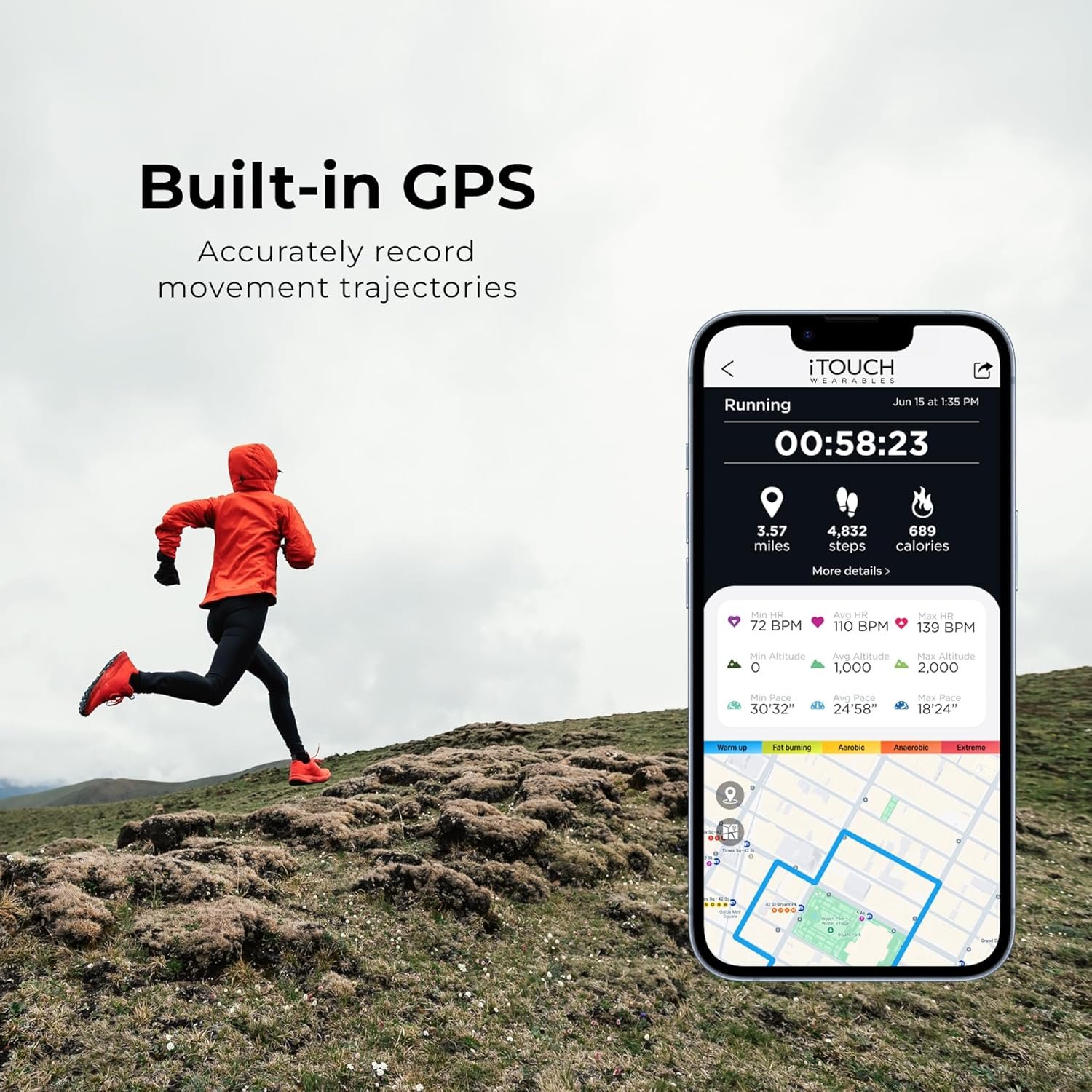 Built-In GPS with Route Mapping — Track your outdoor runs, walks, rides, and hikes without needing your phone for precise distance, pace, and elevation stats.