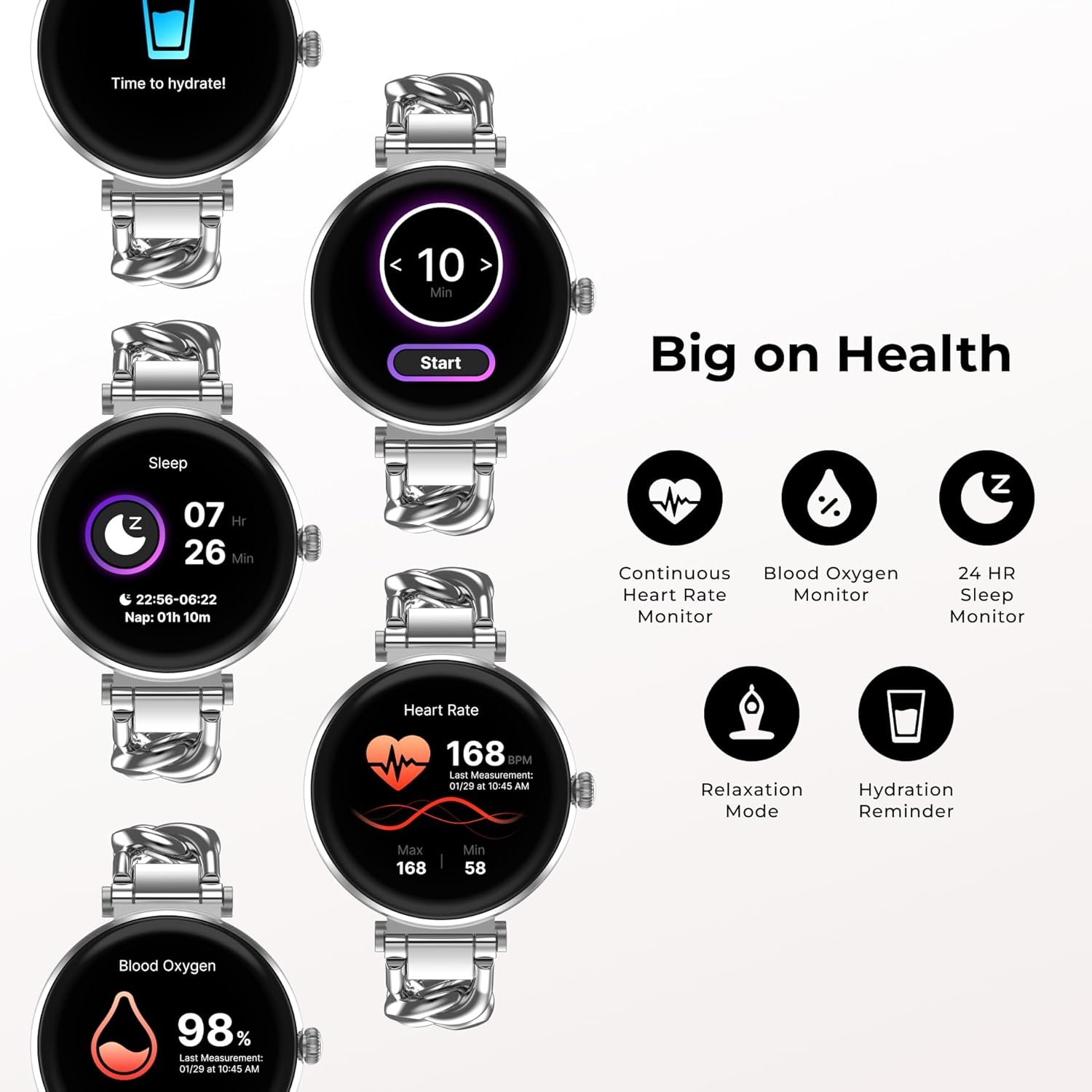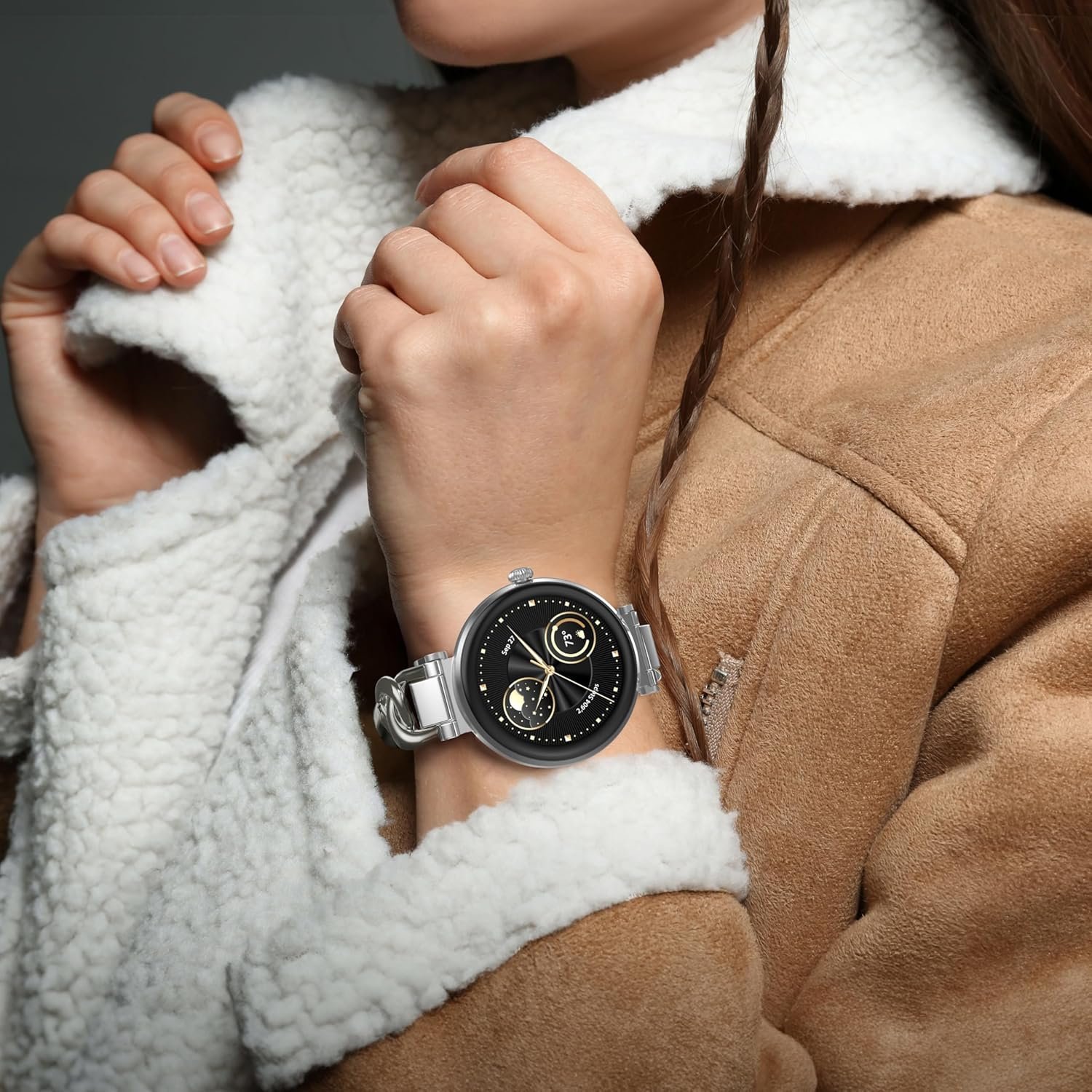 Stylish & Lightweight — 43 mm round zinc alloy case at just 30.5g (strap not included), with silicone, PU, and metal mesh band options to match any outfit.