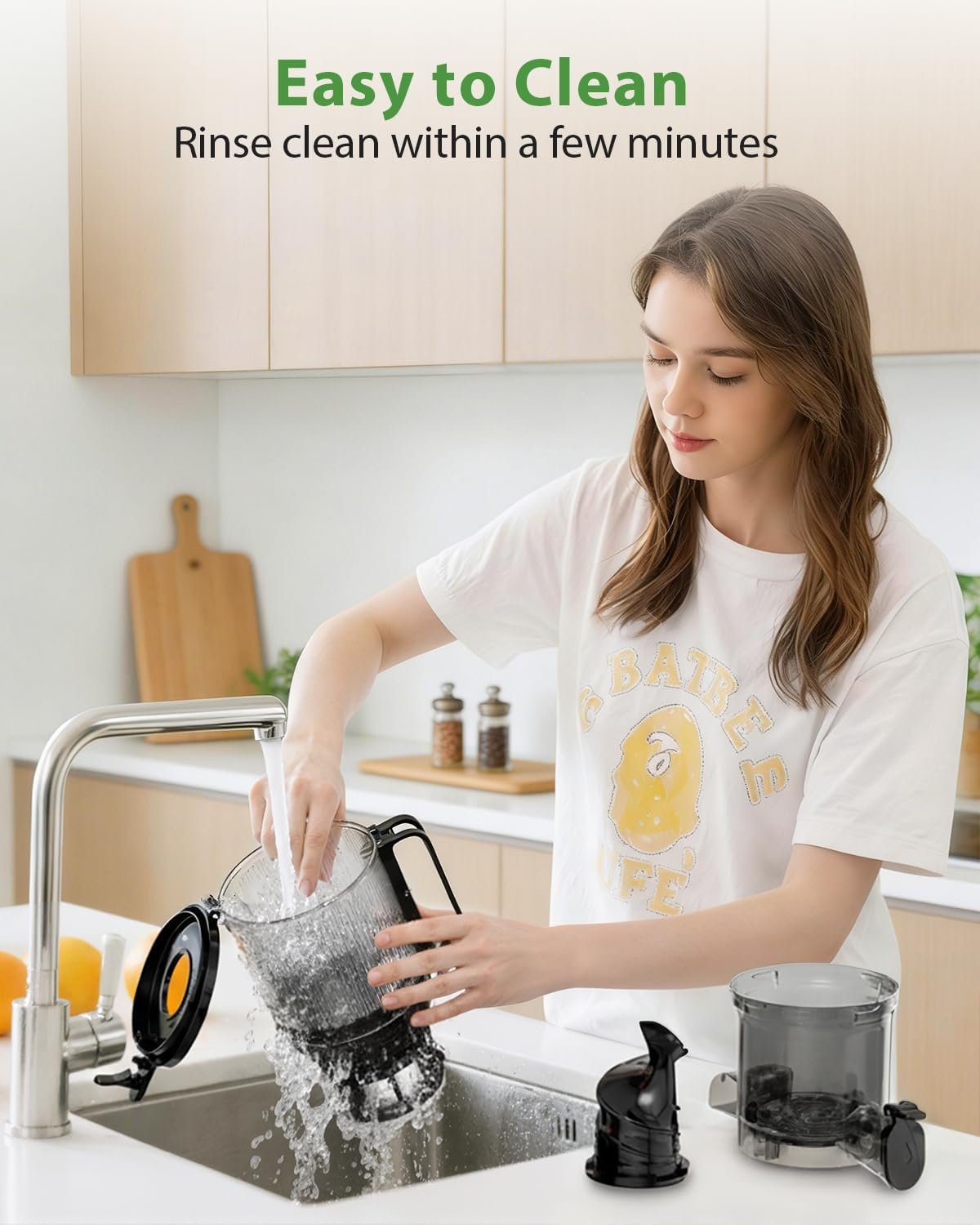 【Easy Assembly & Quick Cleaning】 Designed with an integrated hopper and filter, this juicer assembles in just 3 simple steps.