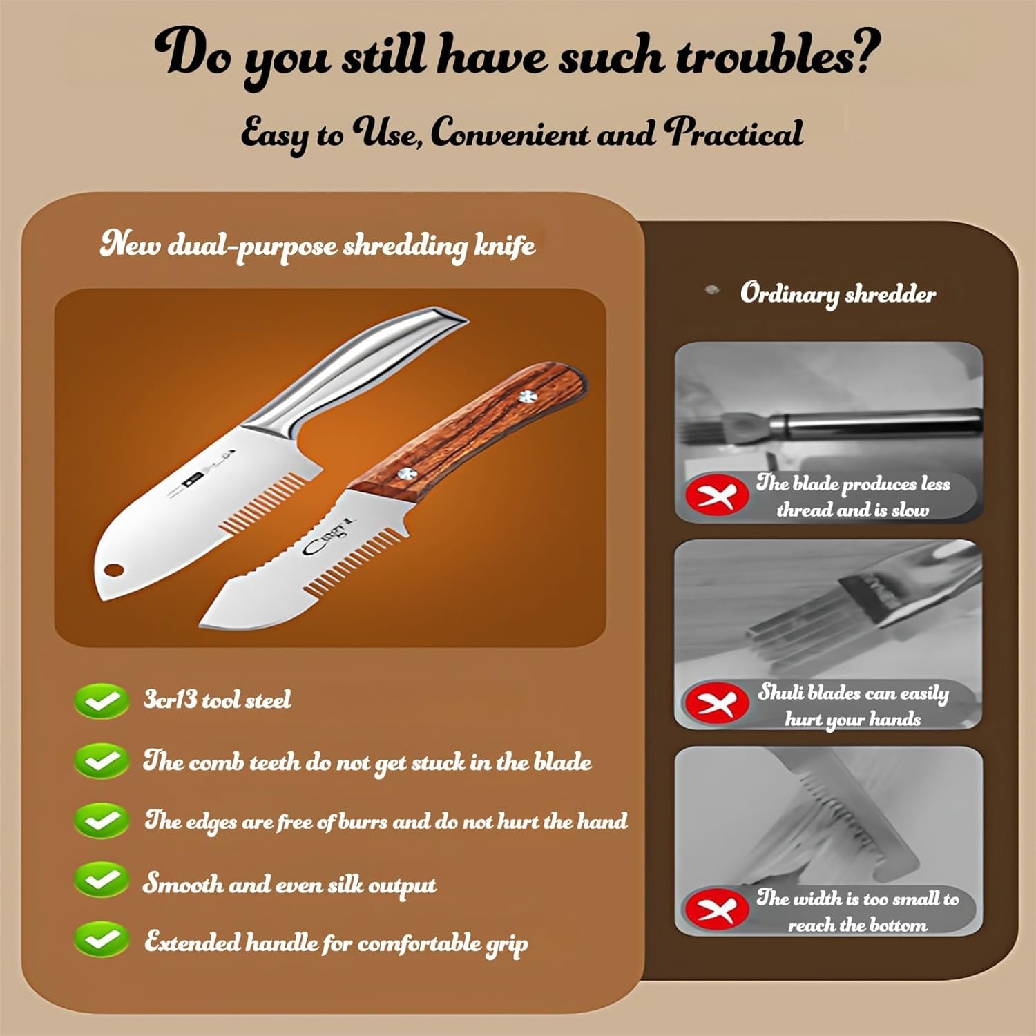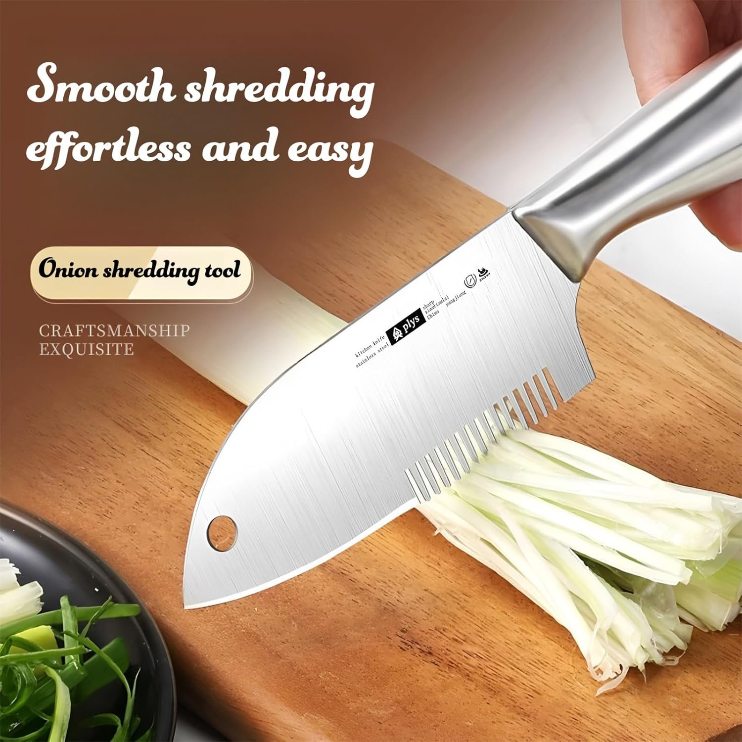 DUAL-FUNCTION DESIGN: Features a unique curved blade with serrated edge on one side and comb teeth on the other, allowing you to slice and shred vegetables in one efficient motion for smooth, effortless food preparation