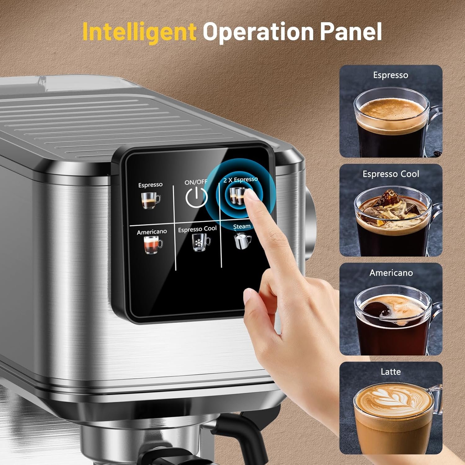 【Convenient Touch Screen】The touch screen design allows you to brew espresso, Americano or cold brew coffee with just one touch. Very easy to operate. The advanced fast heating system ensures that your espresso is ready in no time, making it easy to enjoy your coffee whenever you want.