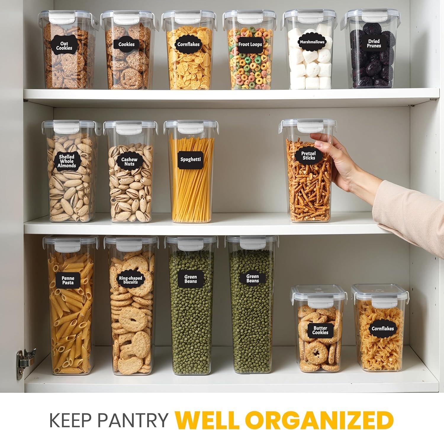 KICHLY Airtight Food Storage Containers Set with Lids – 24 Pack BPA-Free Plastic Pantry Organizers for Cereal, Flour, Sugar & Dry Food (Clear)