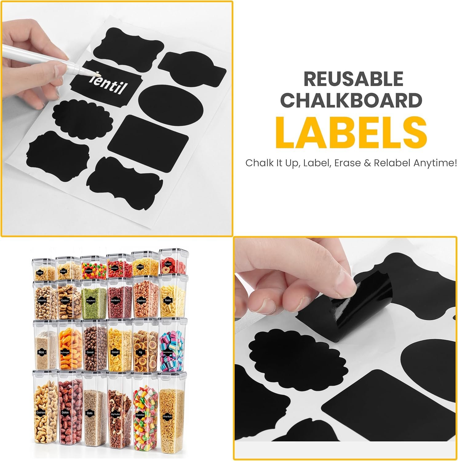 Marker & Labels – Our food storage set comes with reusable chalkboard labels and a chalkboard marker, so you can mark the food stored in each container for your convenience.