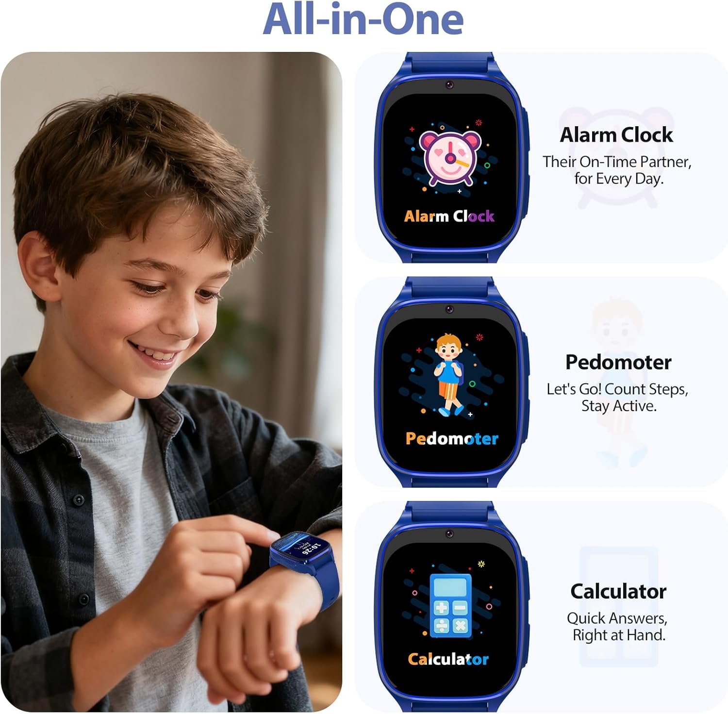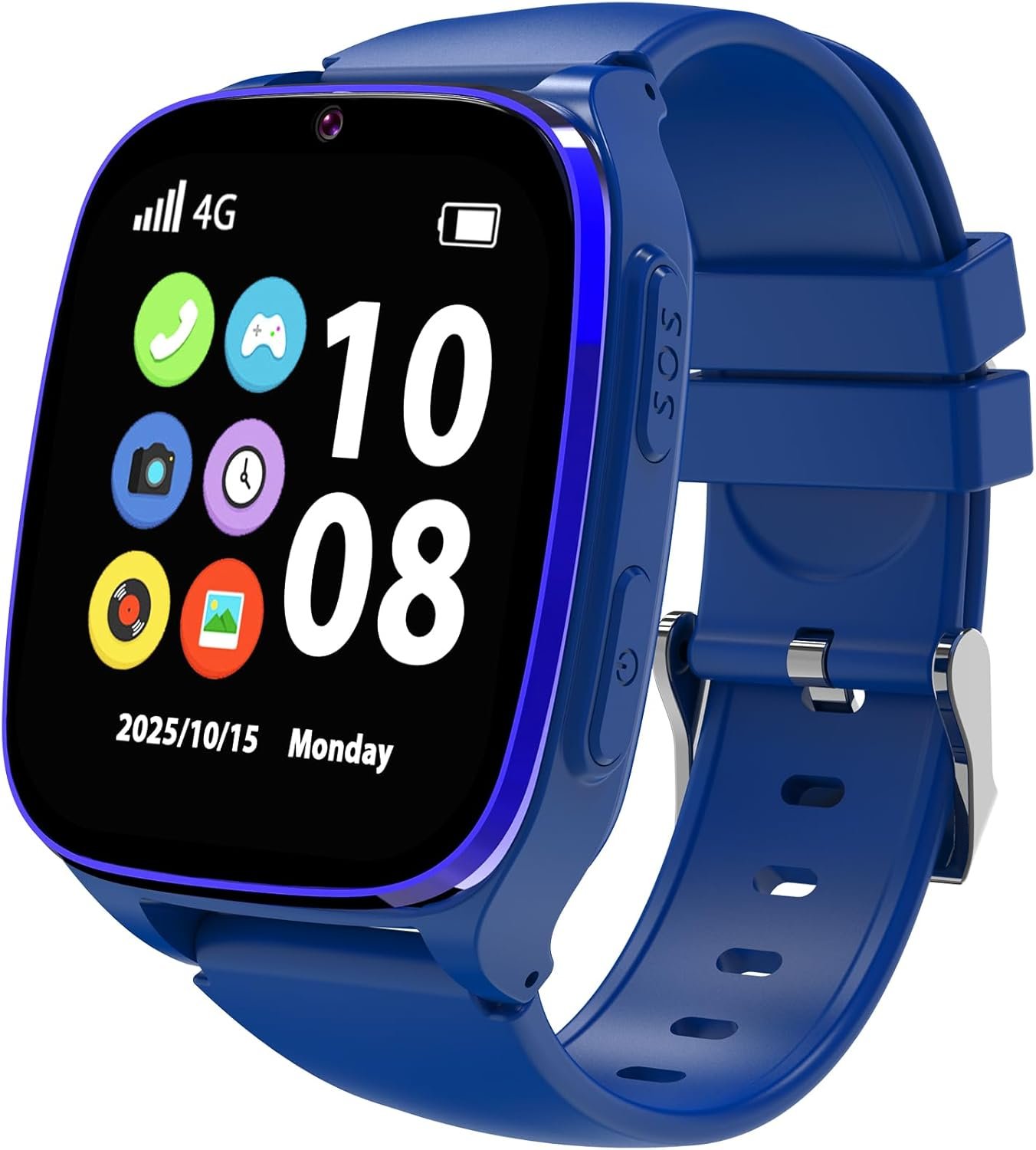Kids Smartwatch for Boys Girls with 4G LTE Calling, Kids Watch with Video Chat, Camera, Games, SOS Call Watch for Children Age 4-12 (Blue(NO GPS))