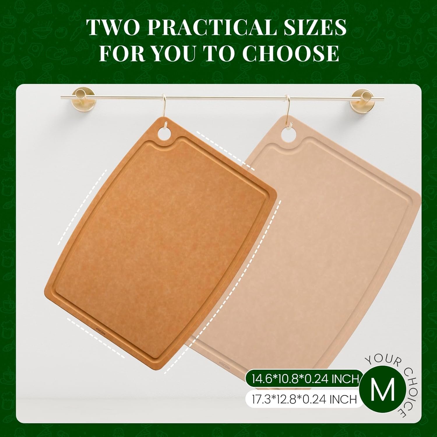 Kikcoin Wood Cutting Board, Cutting Boards for Kitchen Dishwasher Safe Non-slip Chopping Board with Juice Groove, Wood Fiber Composite Cutting Board with Hanging Hole, 14.6″*10.8″